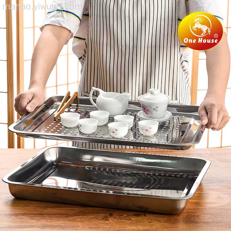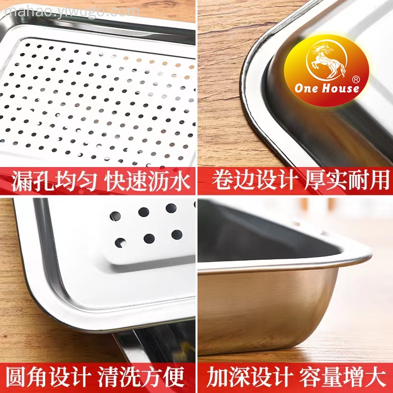 不锈钢漏盘长方形茶盘托盘深蒸盘过滤水沥控油盘