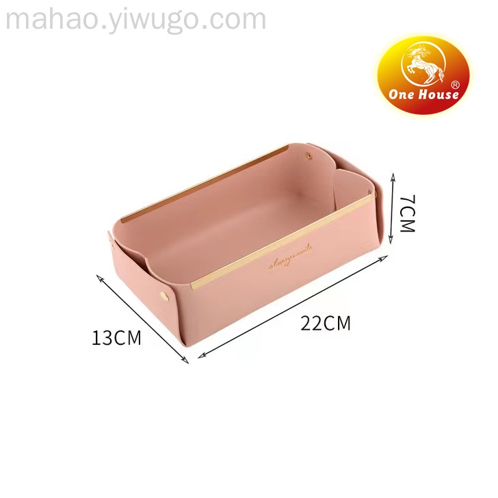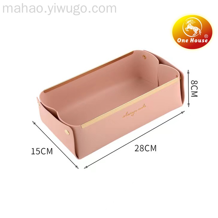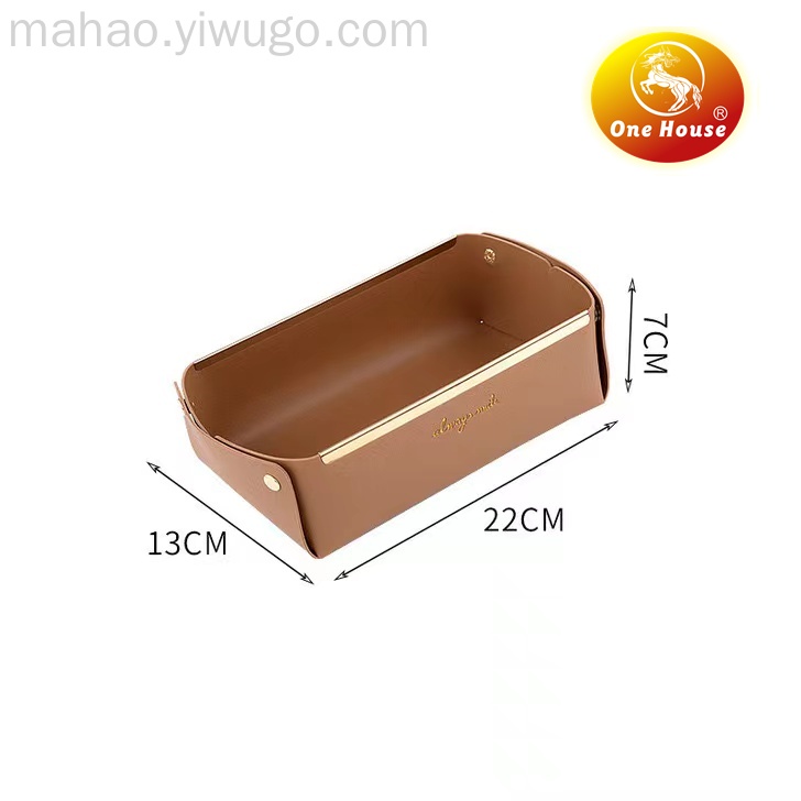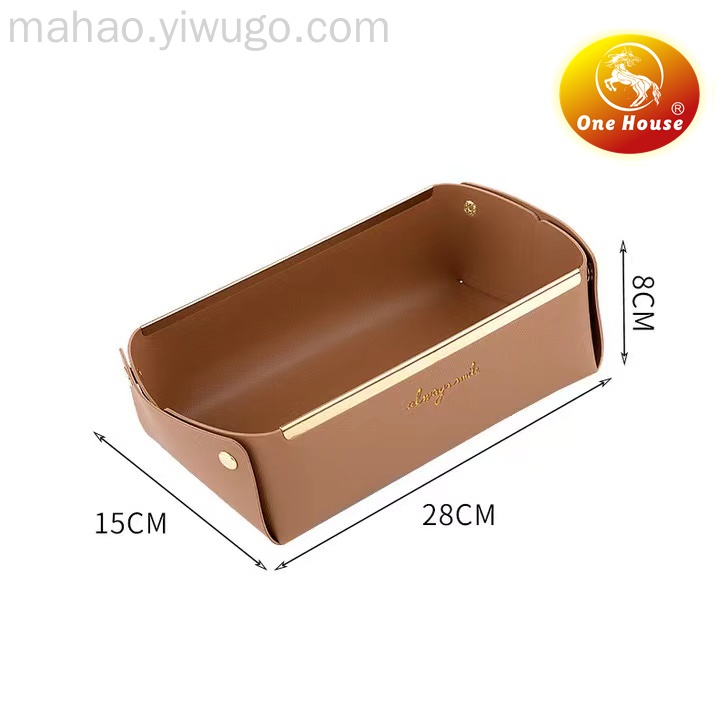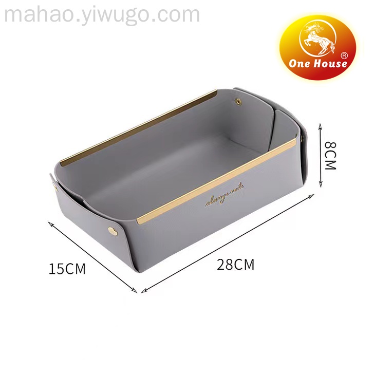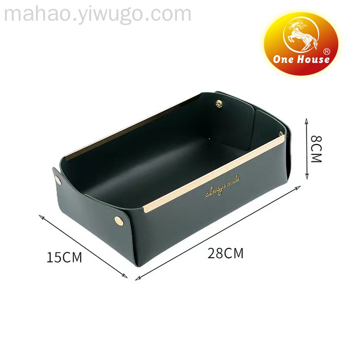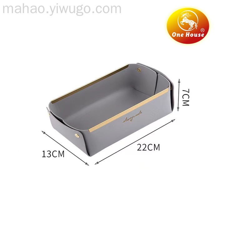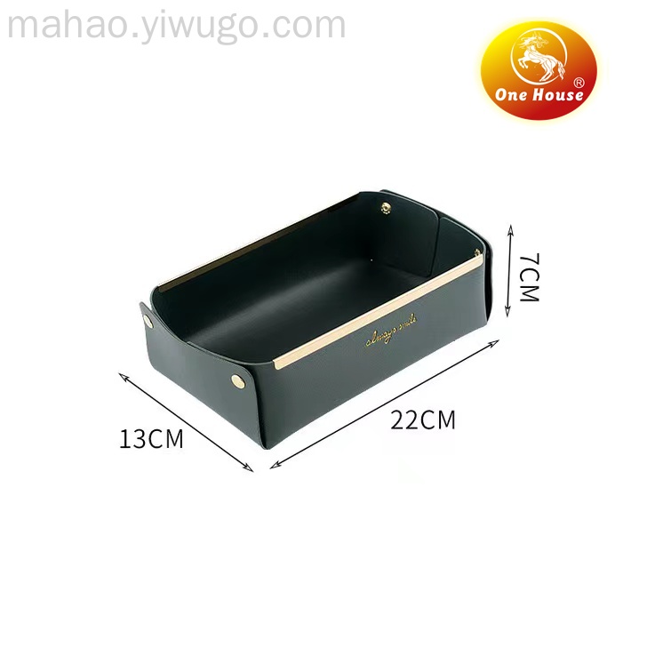 北欧风金边皮质收纳盒桌面杂物整理化妆品首饰零食皮革置物盘