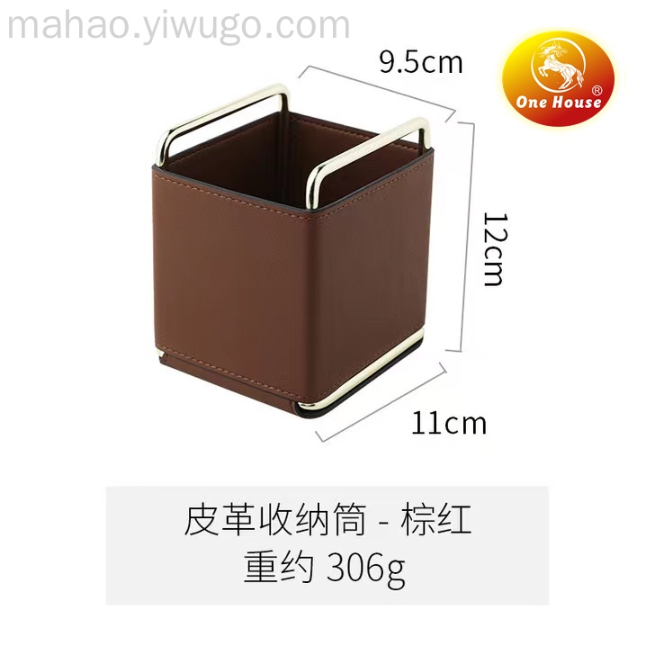 皮革收纳桶桌面化妆品收纳