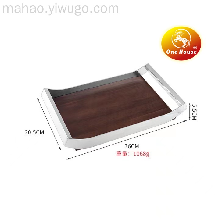 不锈钢胡桃木装饰托盘摆件样板房客厅家居软装收纳水果盘