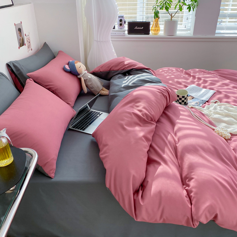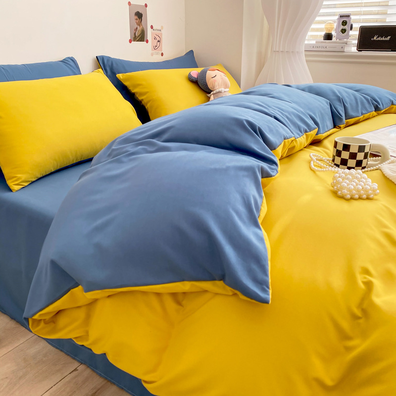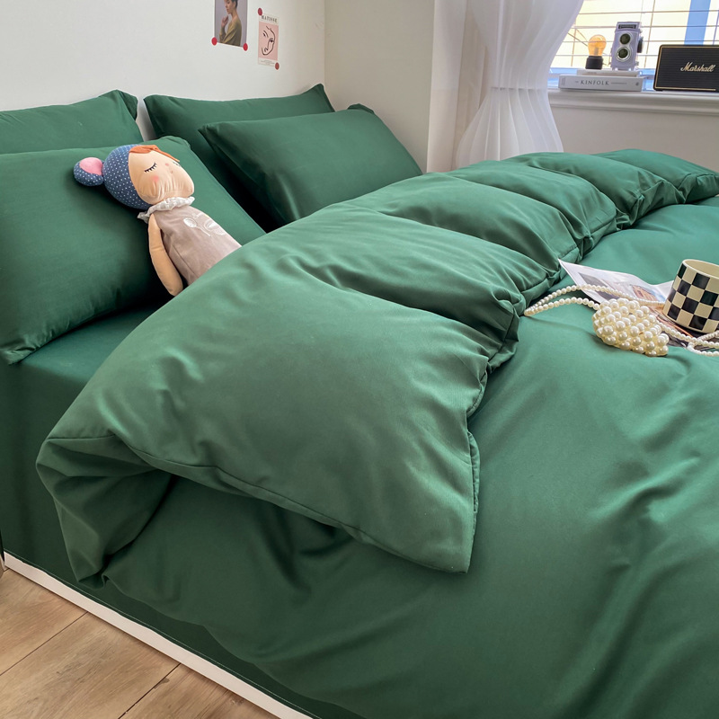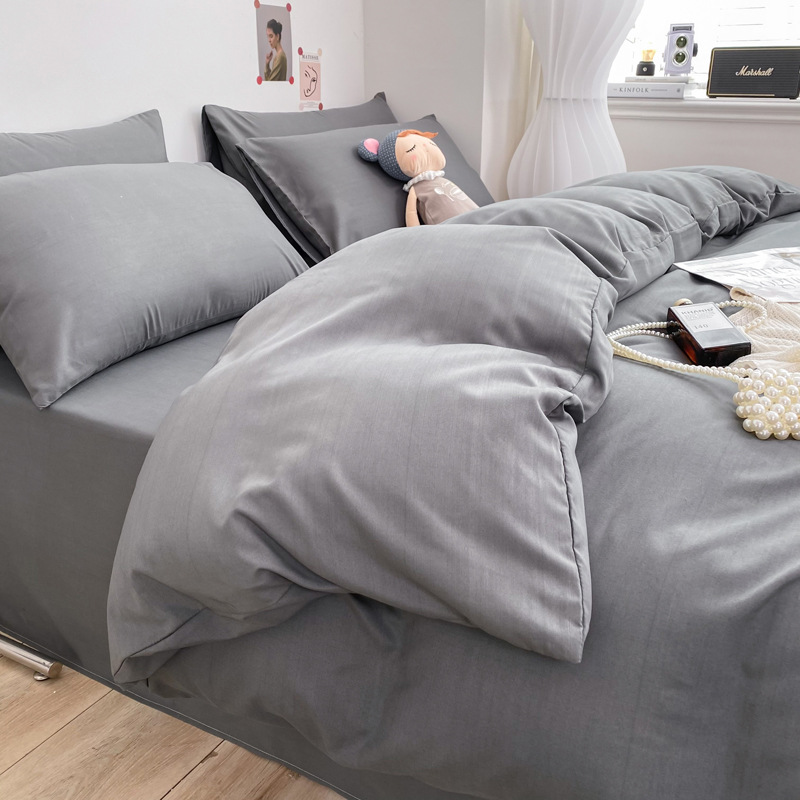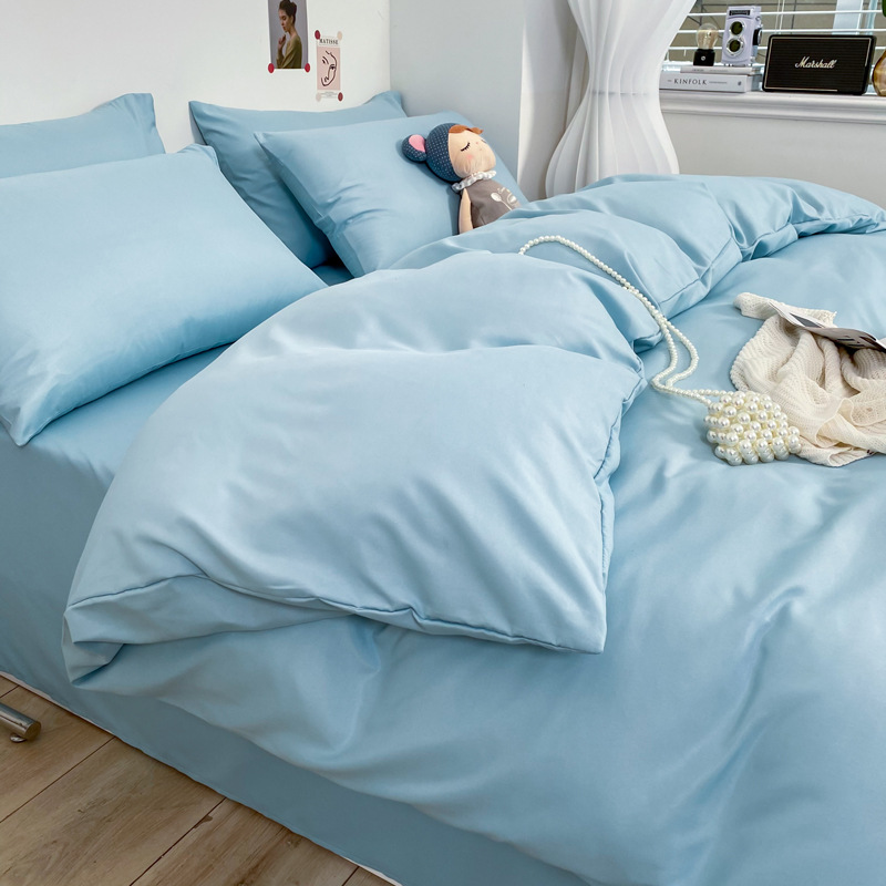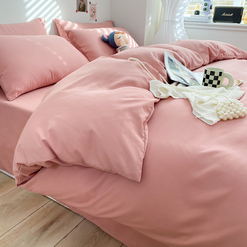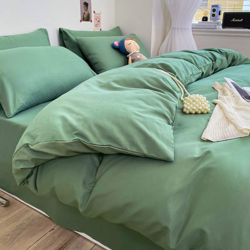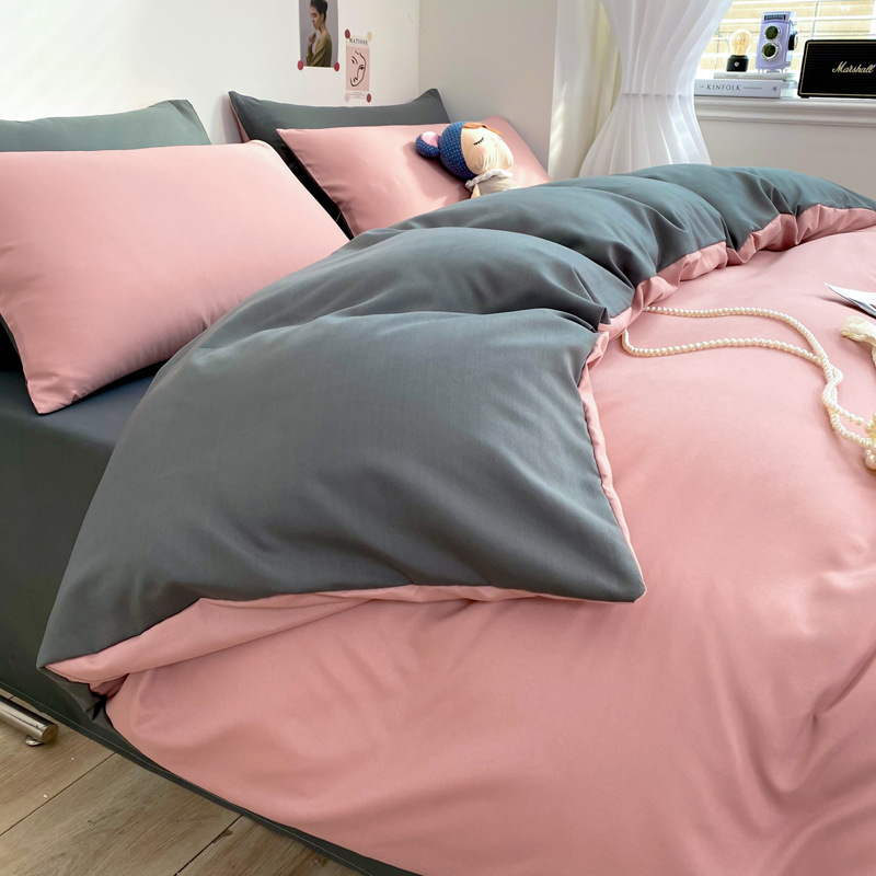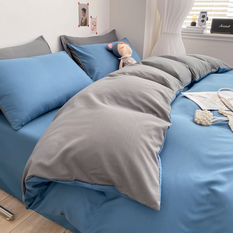 纯色水洗棉四件套轻奢简约风磨毛双拼四件套被套学生宿舍床上用品