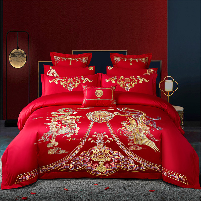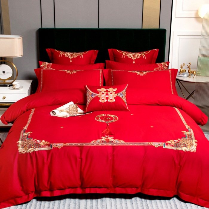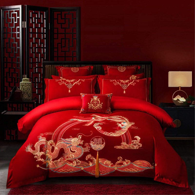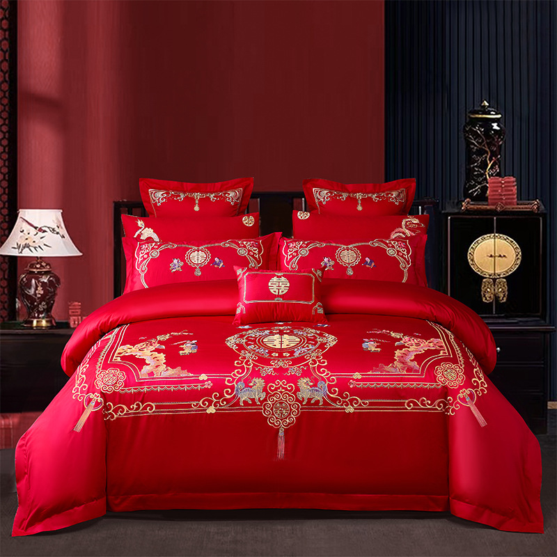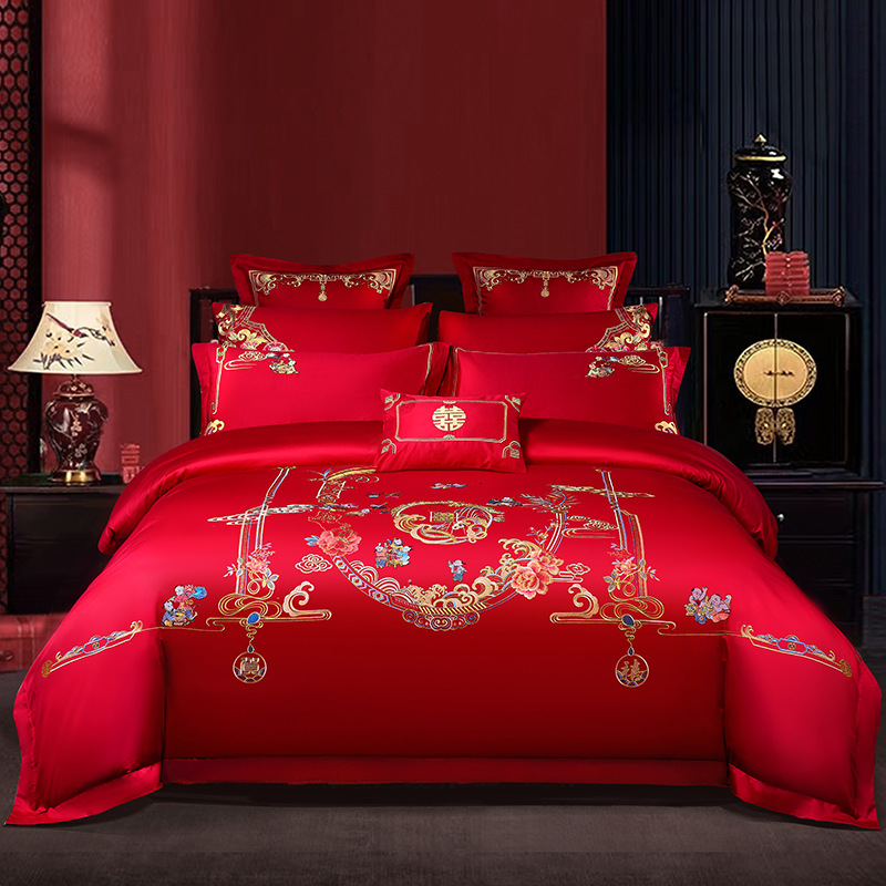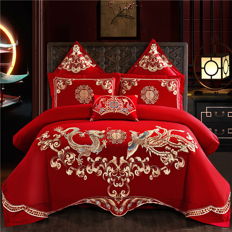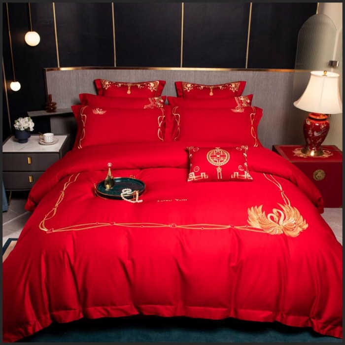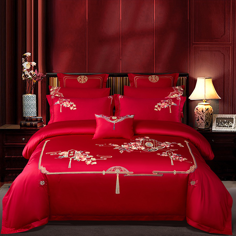 100支新疆长绒棉婚庆四件套大红喜庆结婚床单床盖被套新婚四件套