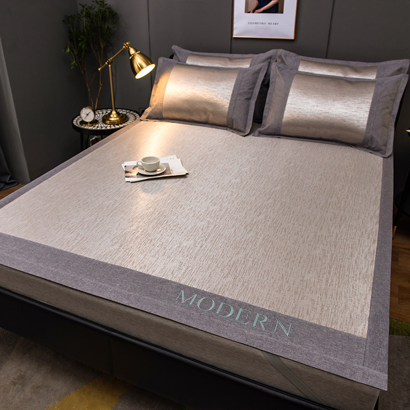 2022新款1200D肌理纹刺绣凉席三件套床垫款床笠款冰丝席厂家批发