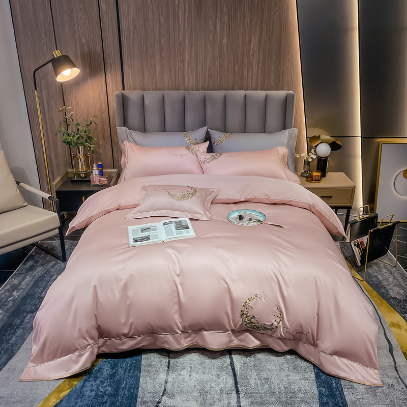 轻奢刺绣160支双股长绒棉四件套100全棉纯棉床单床笠款四件套
