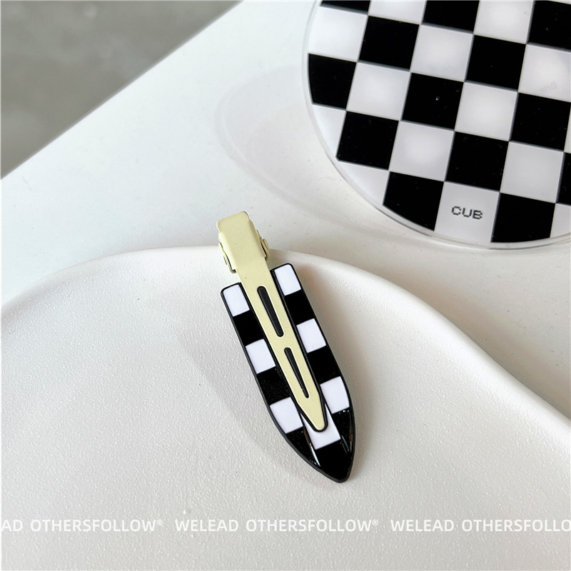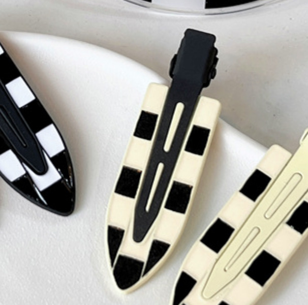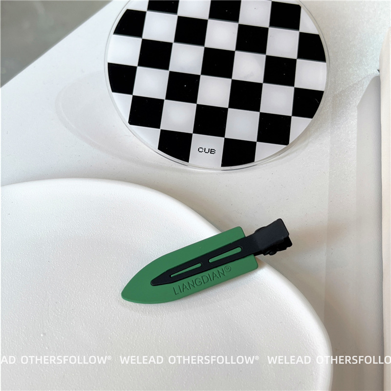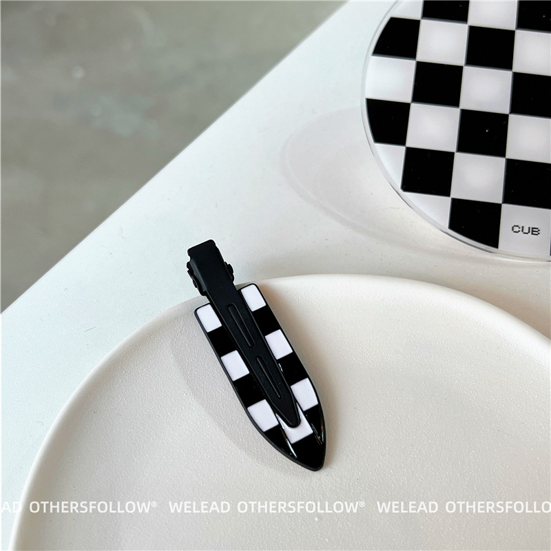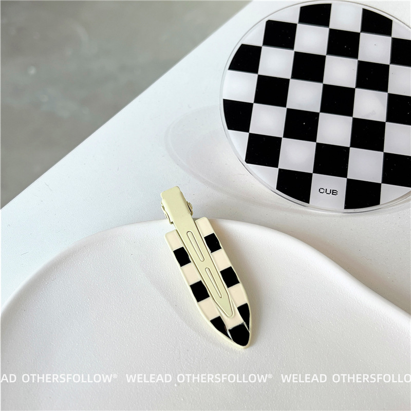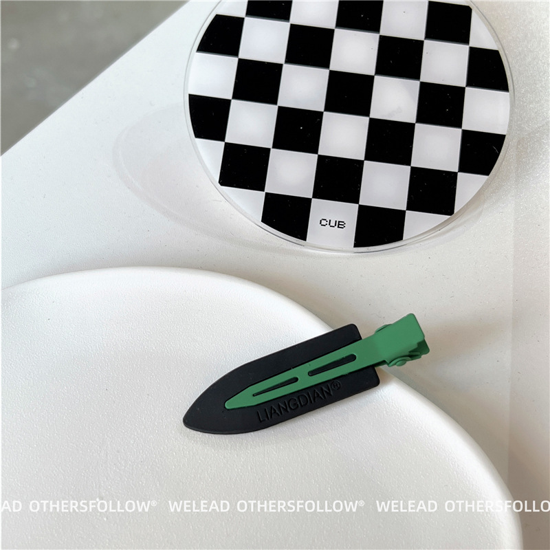 新款绿色发夹女 黑白棋盘格鸭嘴夹碎发刘海夹百搭甜美少女风发饰