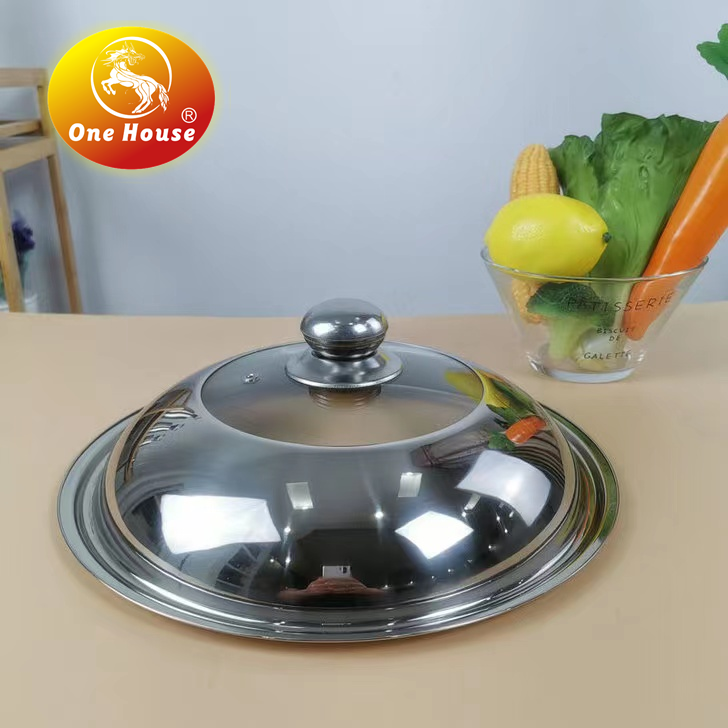 不锈钢锅盖钢化玻璃透明组合盖厨房大炒锅炒菜大锅盖可视