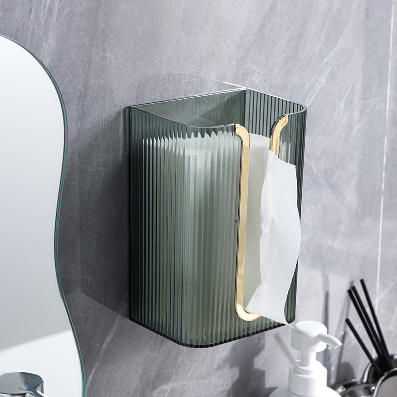 轻奢壁挂纸巾盒家用免打孔透明抽纸盒卫生间厕纸盒防疫口罩收纳盒