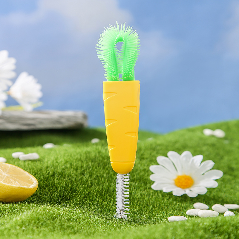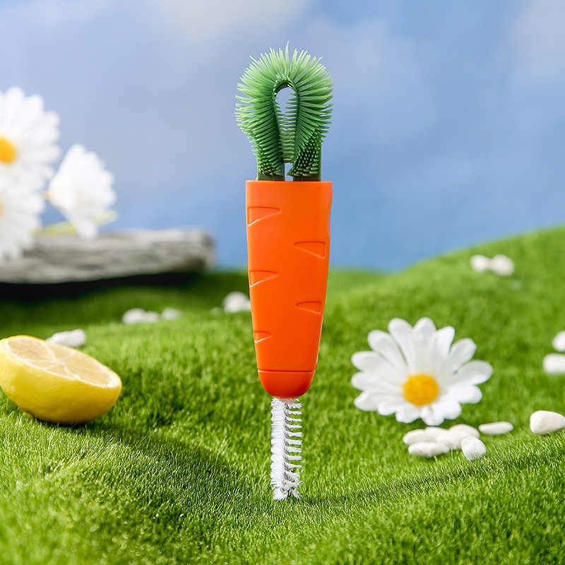 新款创意胡萝卜奶杯刷多功能凹槽清洁刷 三合一清洁杯盖缝隙刷