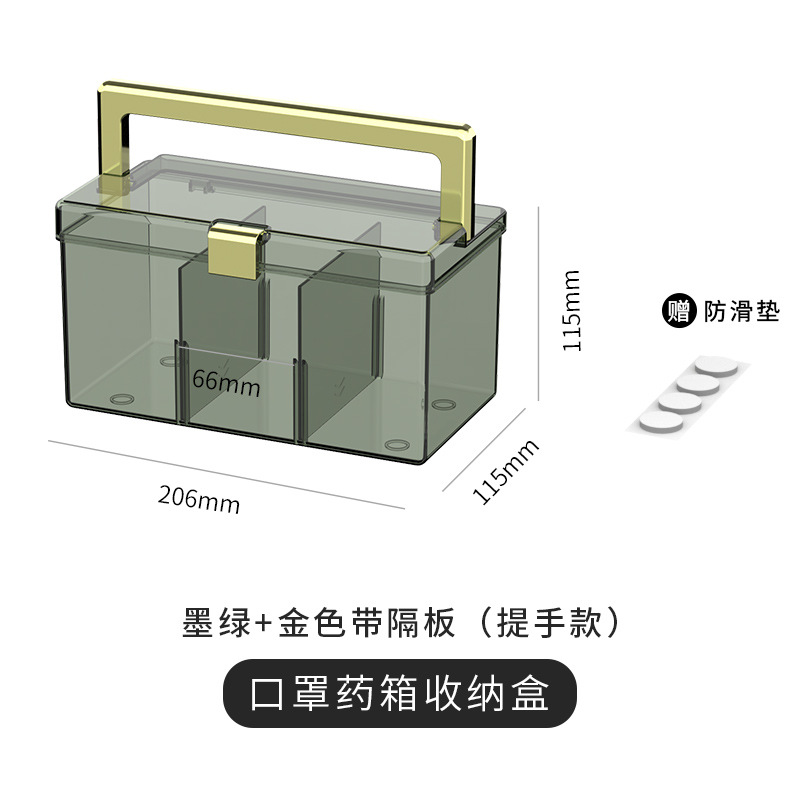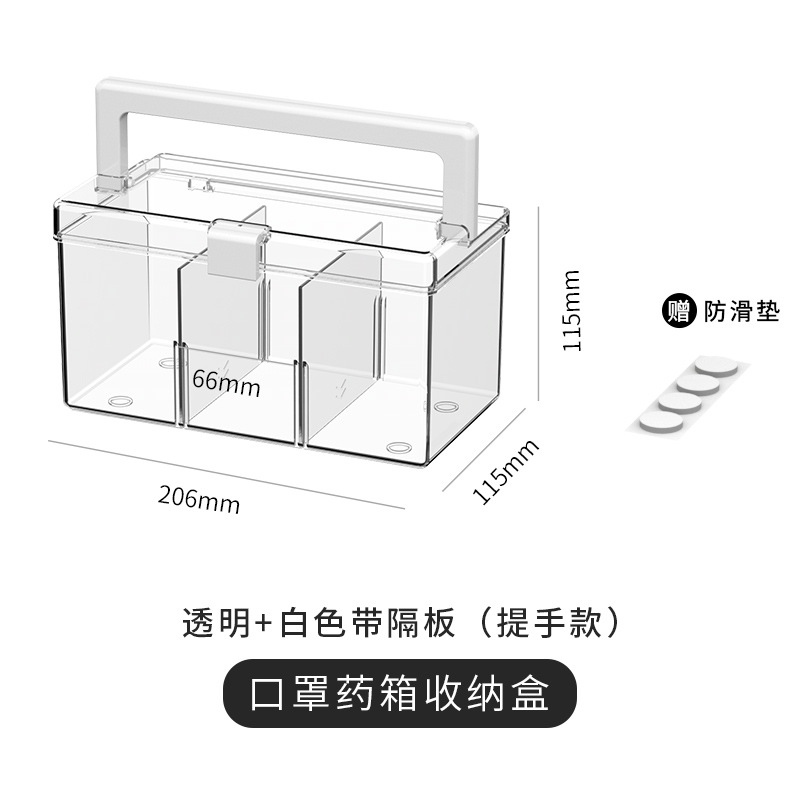 家用轻奢防尘密封药箱便携手提透明桌面收纳箱防疫装口罩收纳盒
