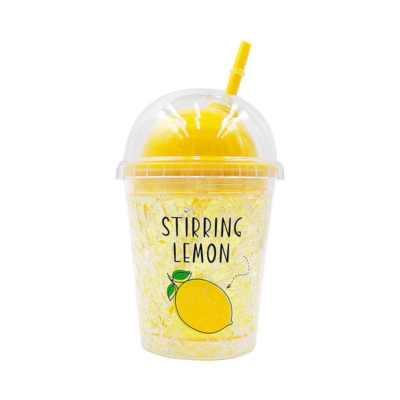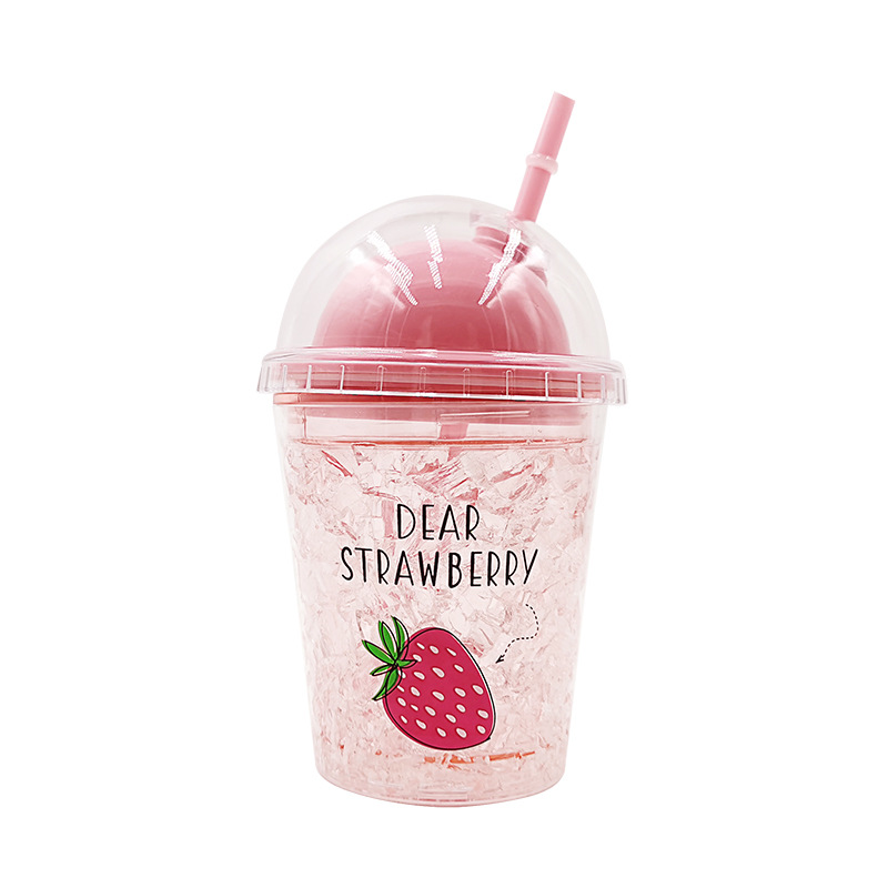 双层夏日塑料水杯创意吸管水果字母保冰水杯冷凝胶保冰杯制冷杯