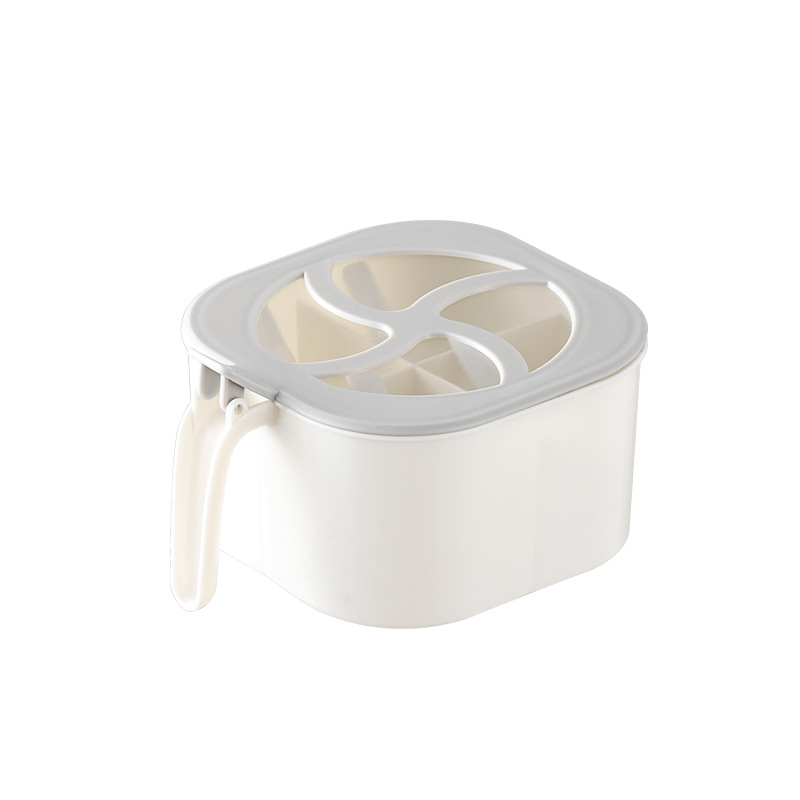 收纳厨房调料盒四格带勺带盖塑料调味盒套装北欧调味品盐罐调料盒