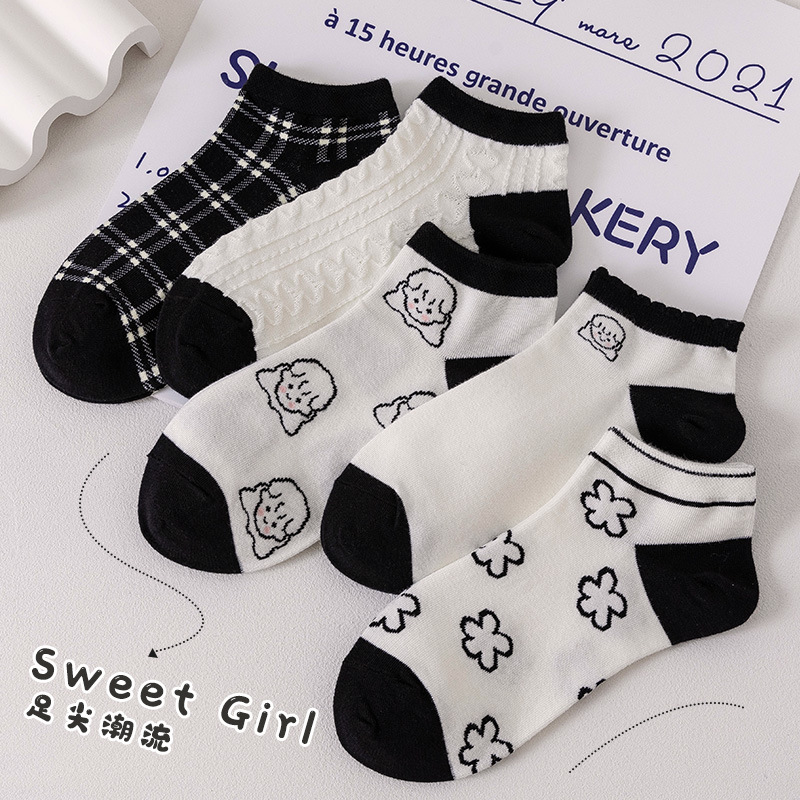 短袜女潮流低帮不掉跟浅口ins春夏季卡通百搭必备透气女舒适