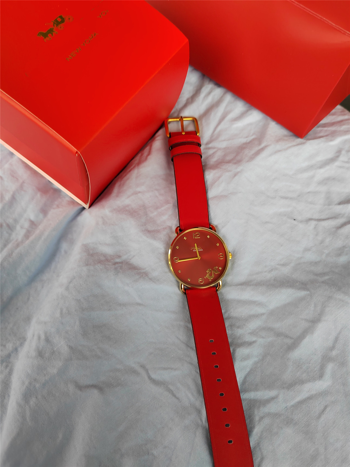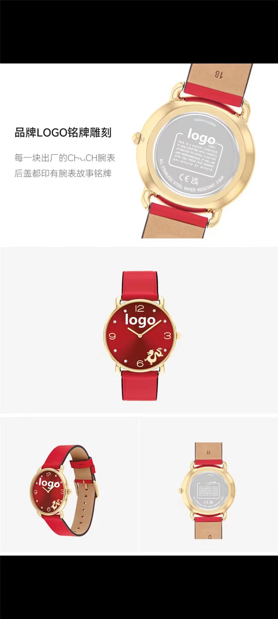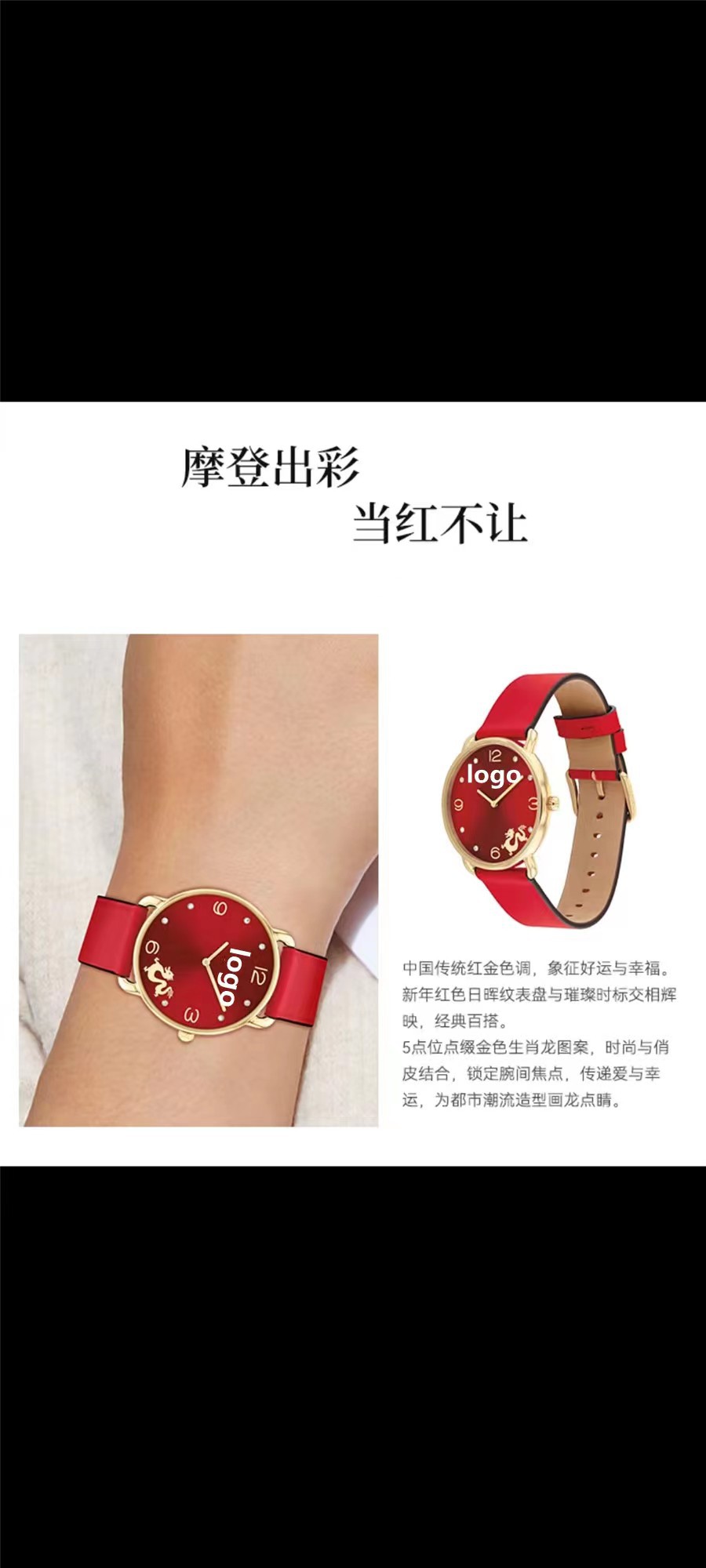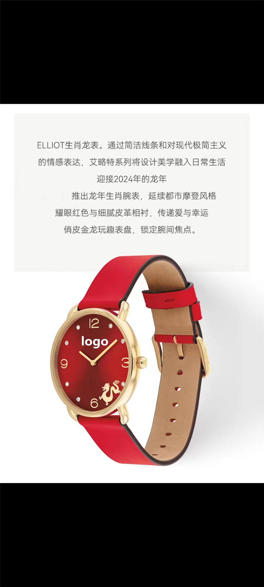 蔻家龙年限定款红色手表石英腕表ELLIOT系列时尚皮带女士手表代发