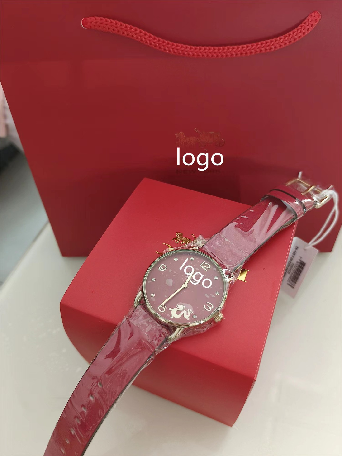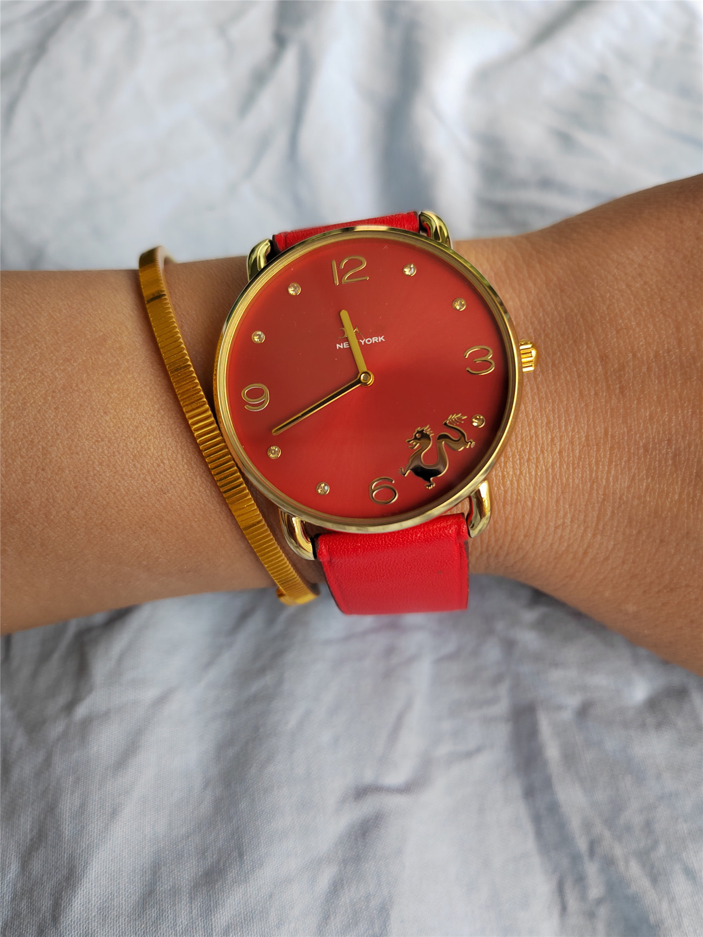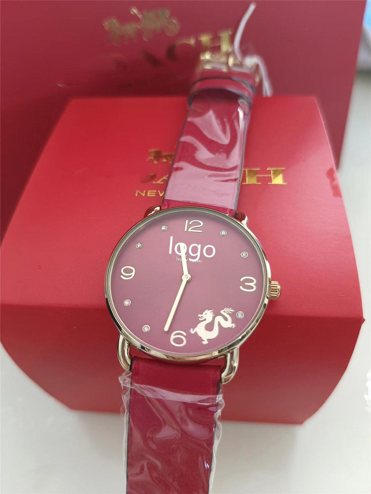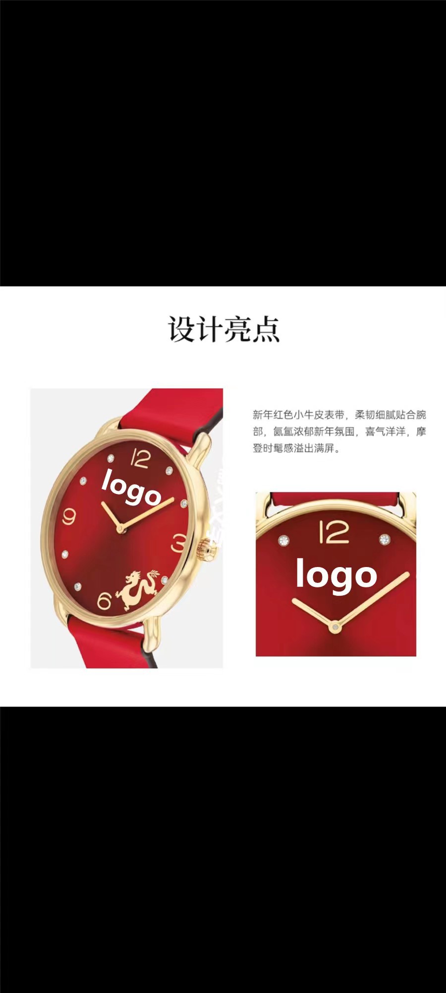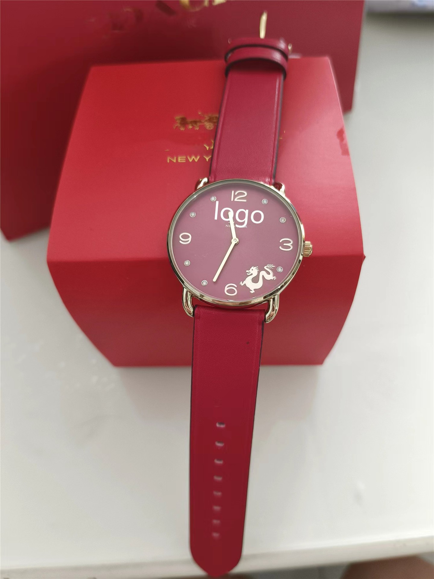 蔻家龙年限定款红色手表石英腕表ELLIOT系列时尚皮带女士手表代发