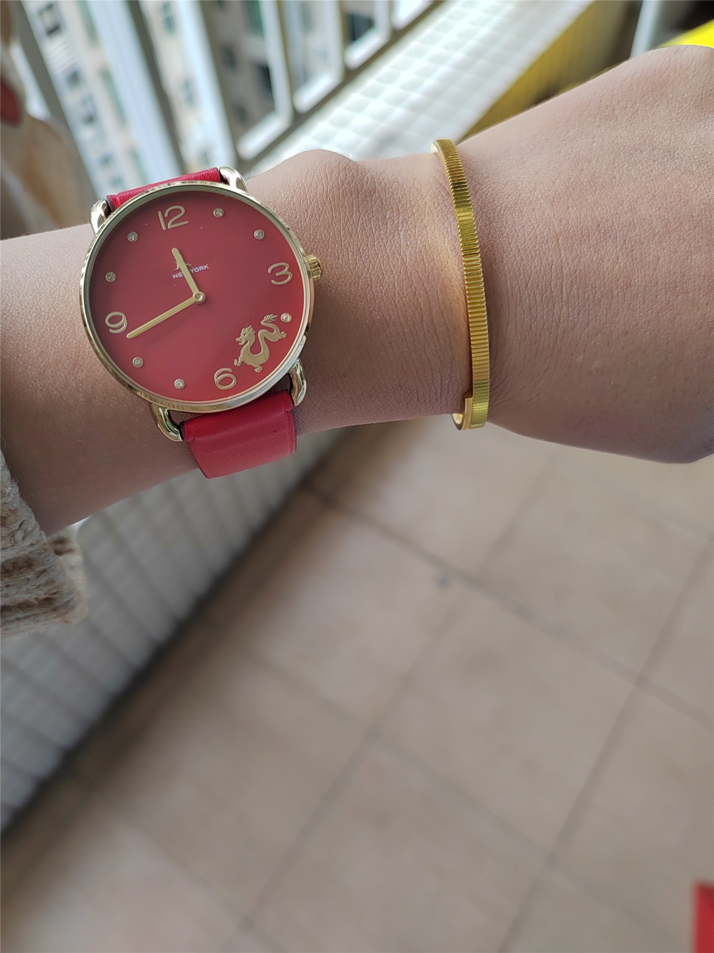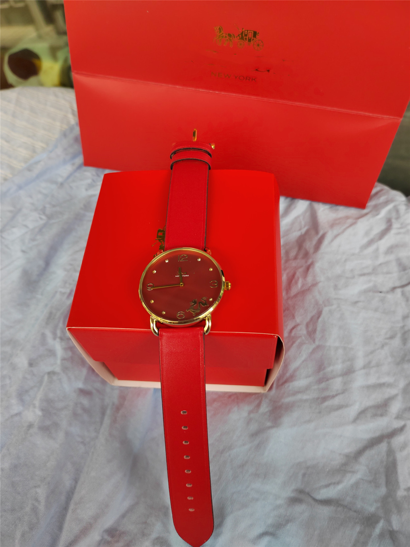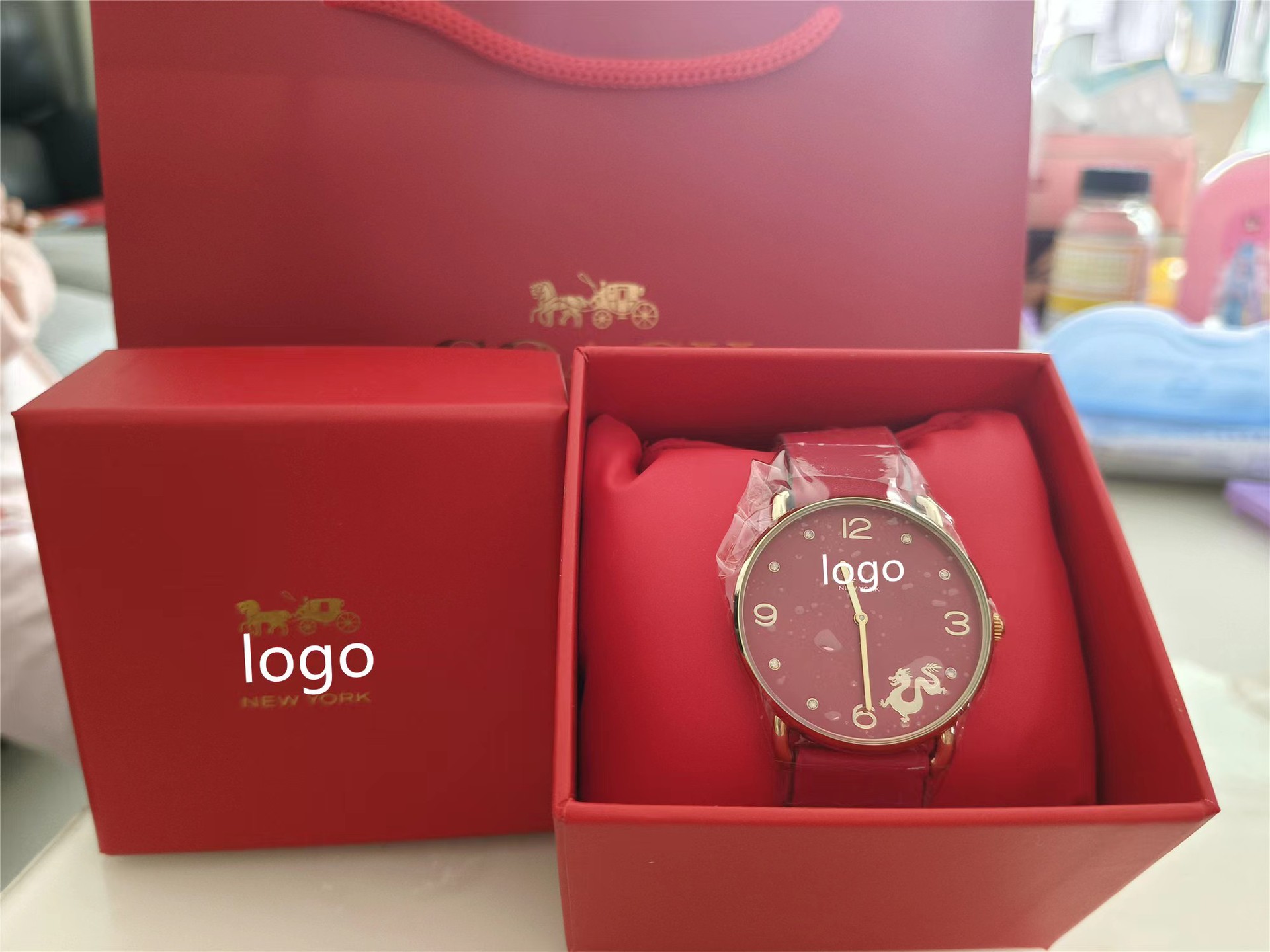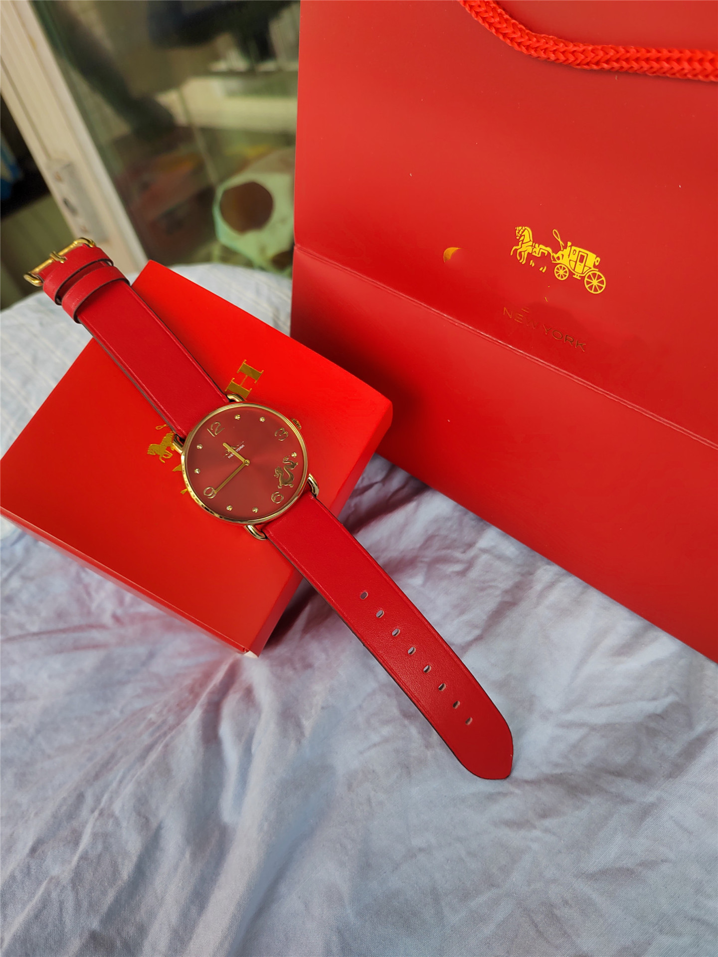蔻家龙年限定款红色手表石英腕表ELLIOT系列时尚皮带女士手表代发