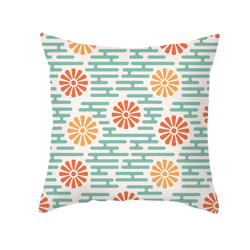 2025花卉几何印花抱枕套shopee跨境桃皮绒印花抱枕 ins客厅靠枕套
