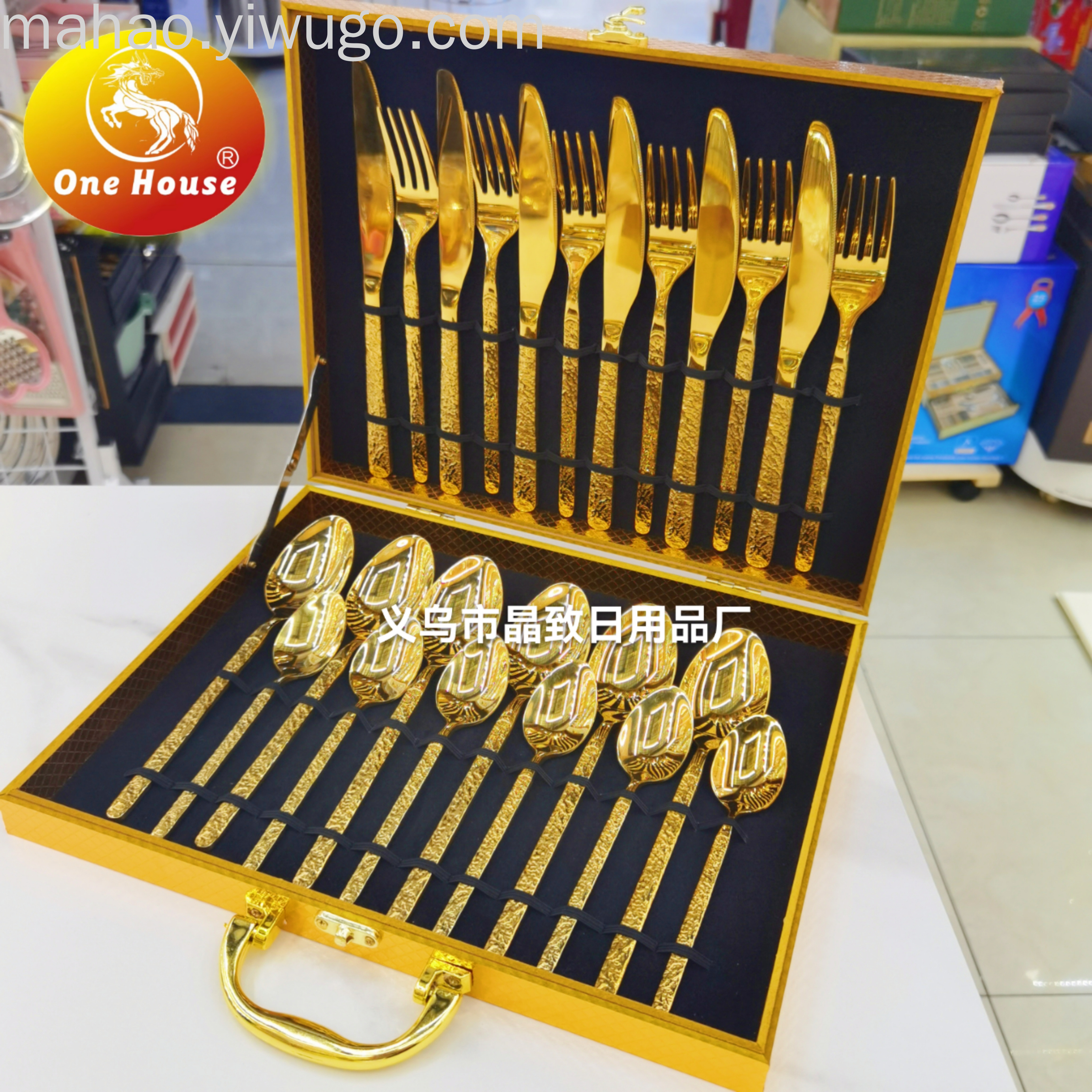 201材质不锈钢石纹柄镀刀叉勺餐具
