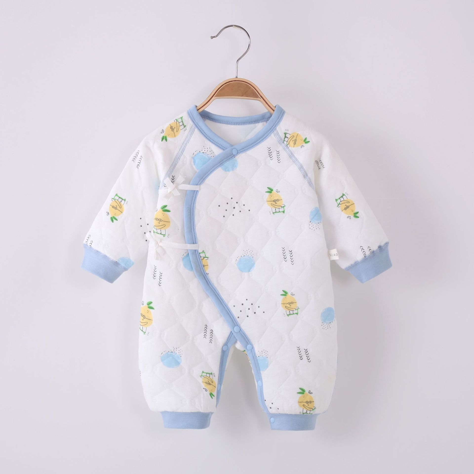 婴儿衣服无骨棉秋冬夹棉新生儿绑带连体衣出生宝宝和尚服睡衣