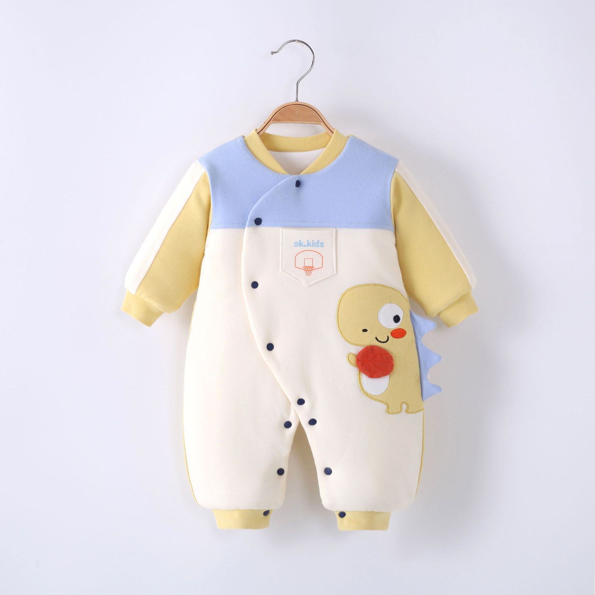 21秋冬新款0-12月薄棉连体衣新生儿偏襟哈衣可爱包屁衣宝宝睡衣