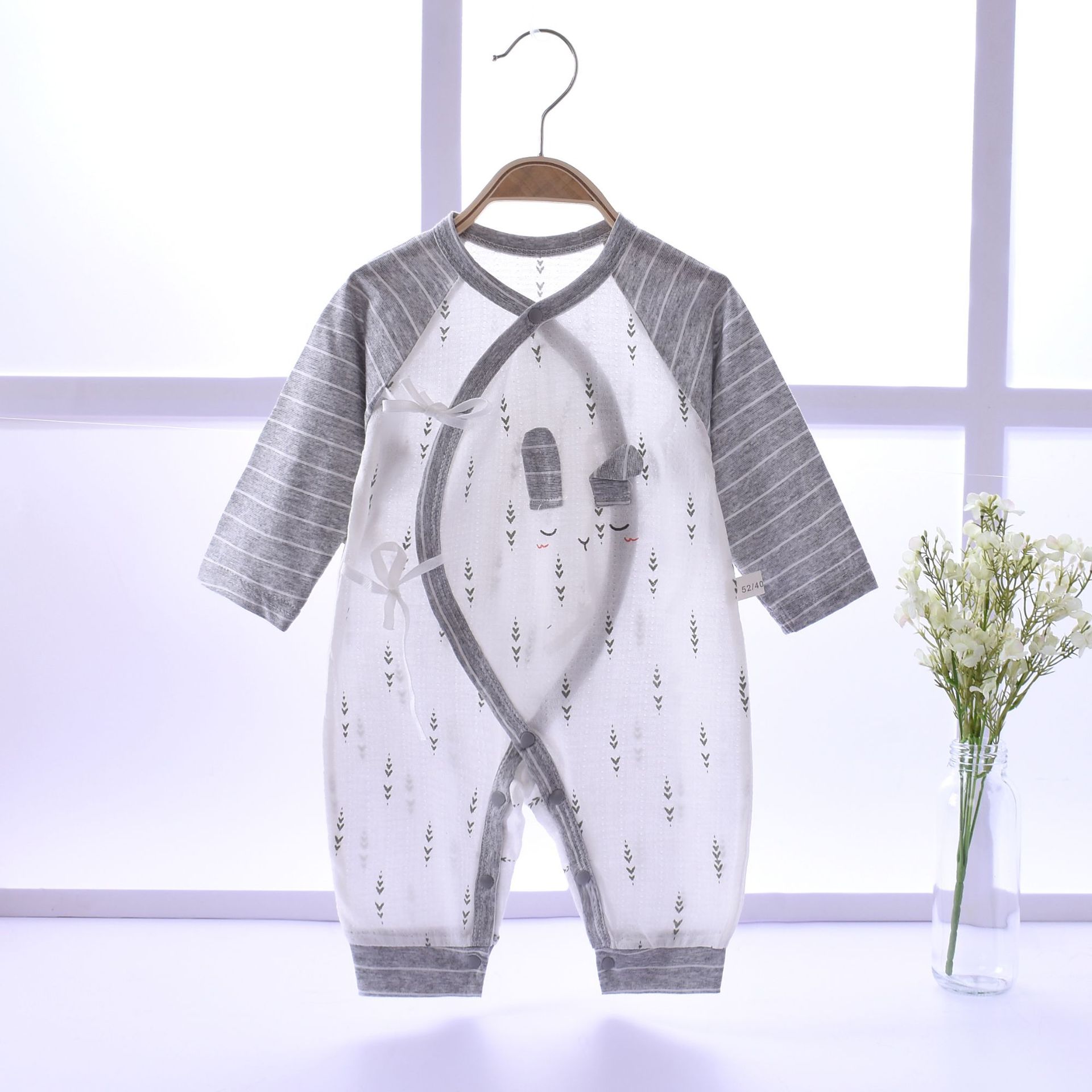 2020新生儿连体衣超薄款空调服婴儿睡衣偏襟系带和尚服宝宝哈衣