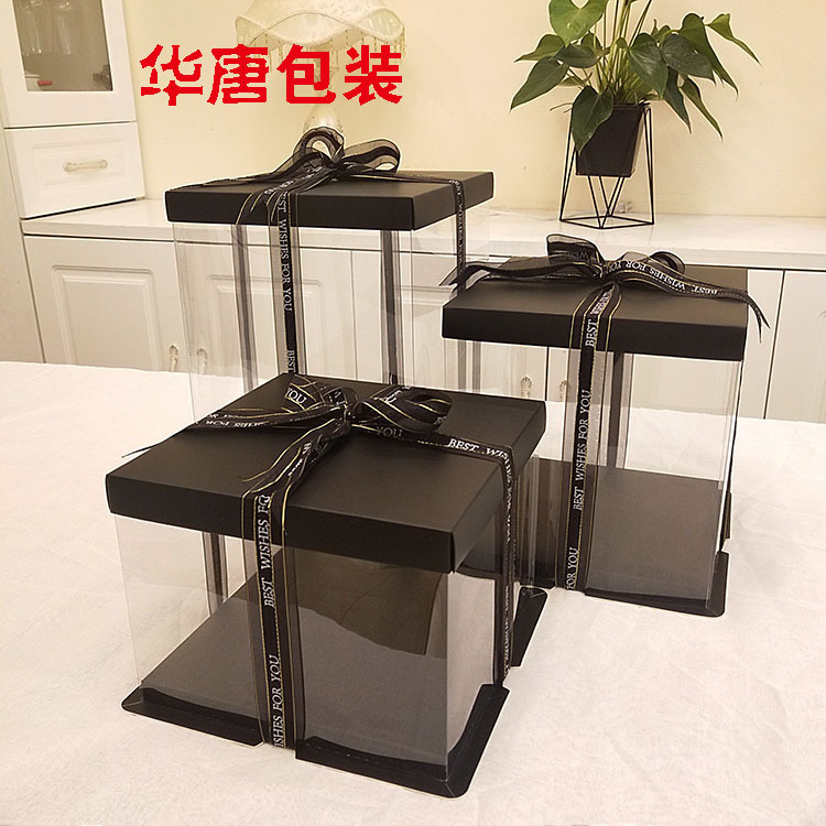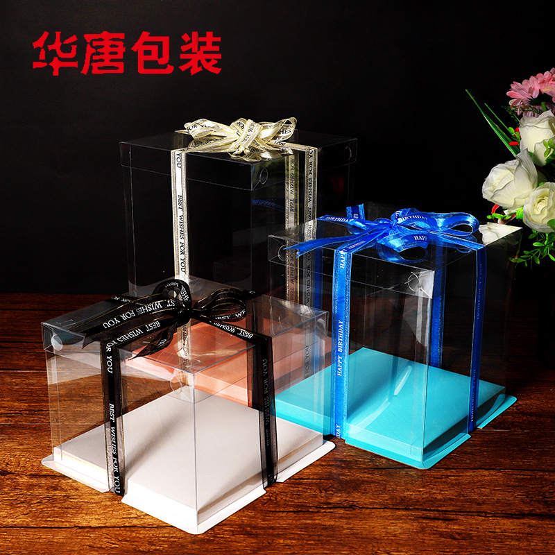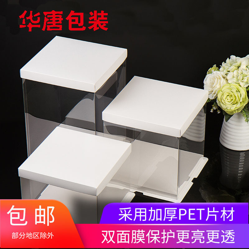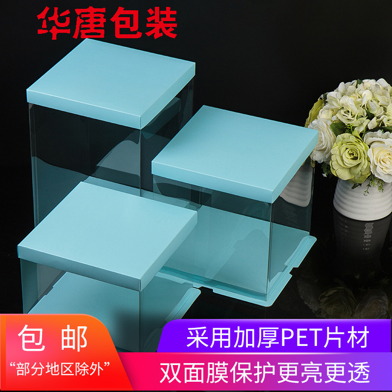 华唐透明蛋糕盒PET围边单双层加高468寸三合一生日方形烘焙包装盒