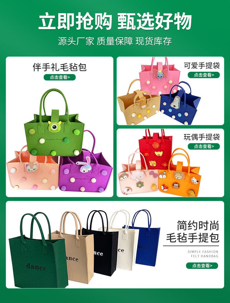 卡通可爱毛毡手提袋宝宝百日周岁宴伴手礼毛毡包广告宣传礼品袋