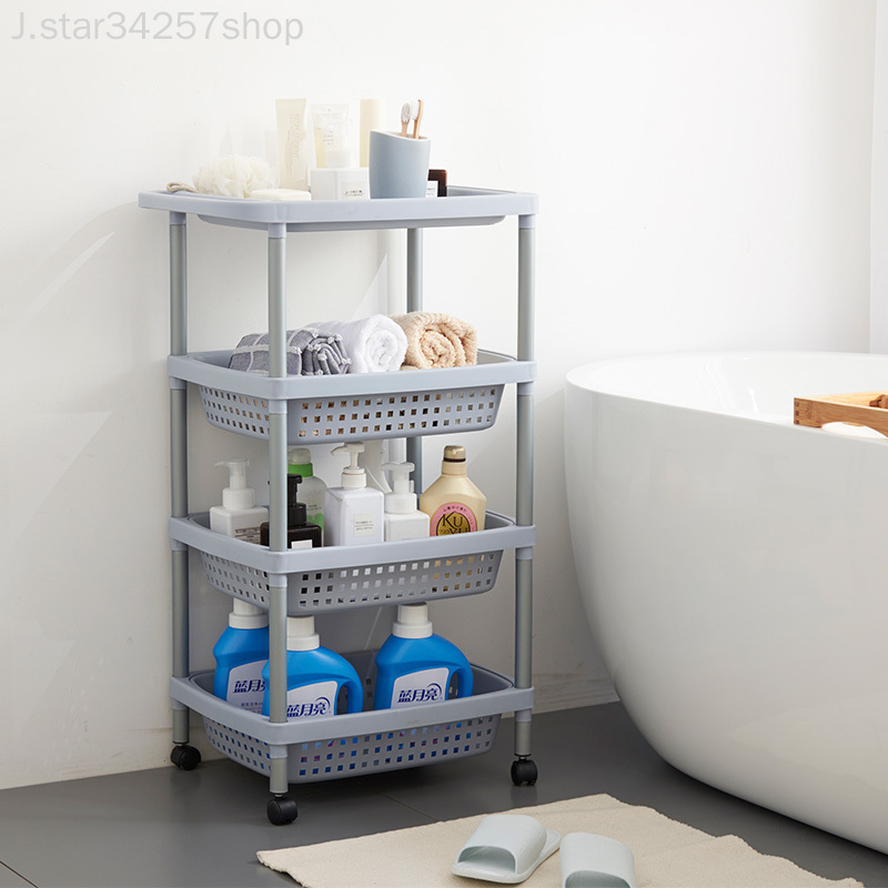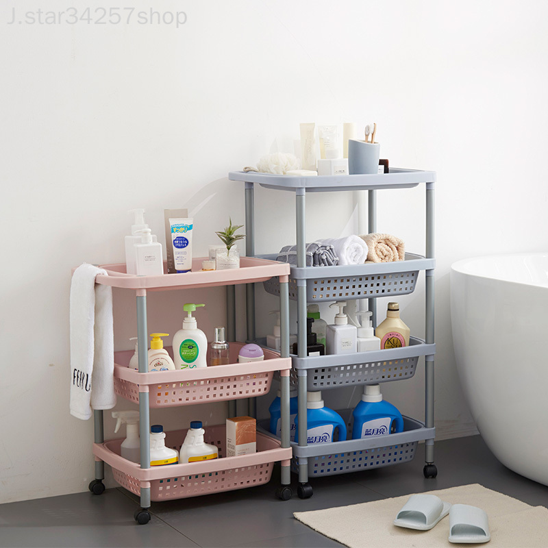 北欧带轮置物架塑料多层书架卧室卫生间浴室落地厨房收纳储物架子