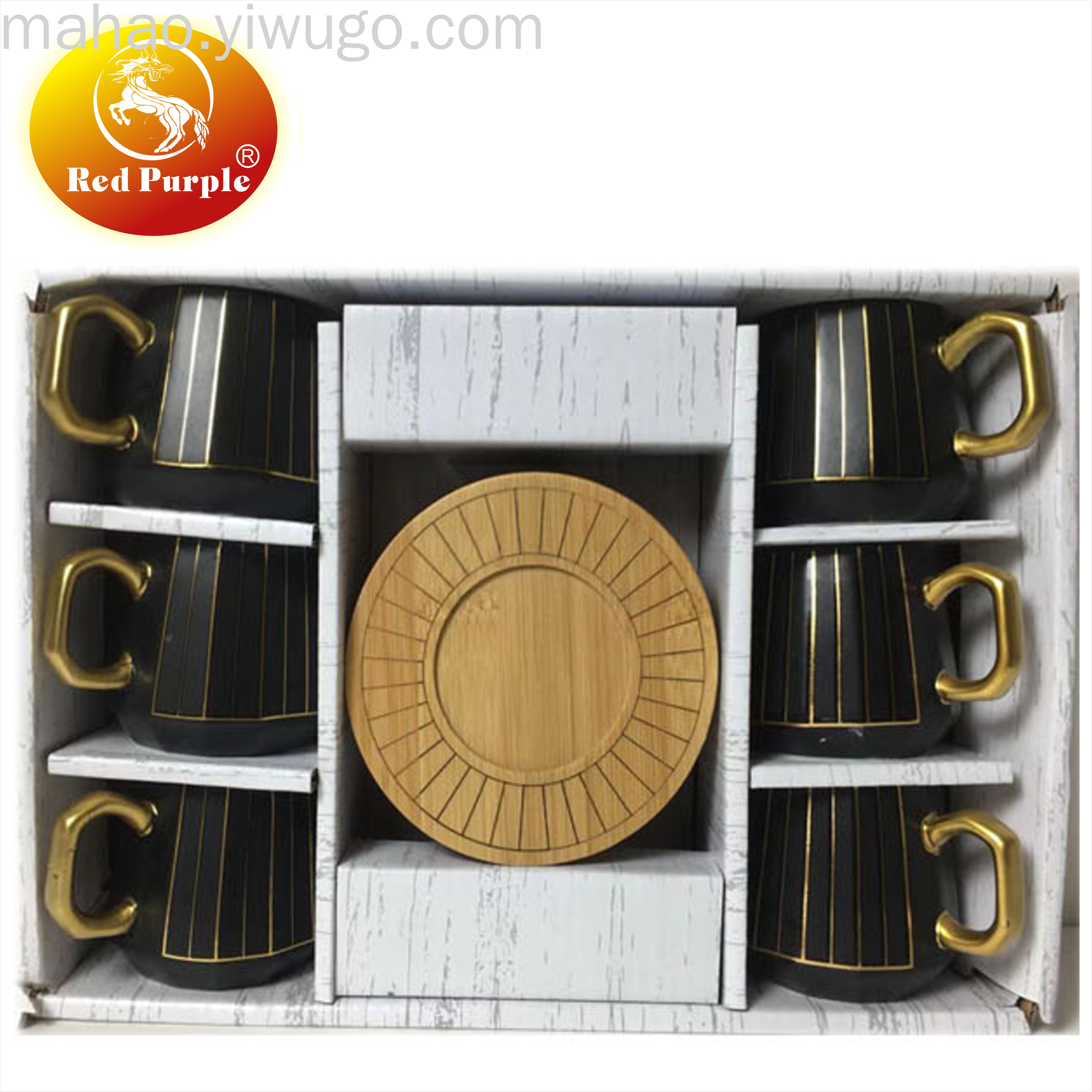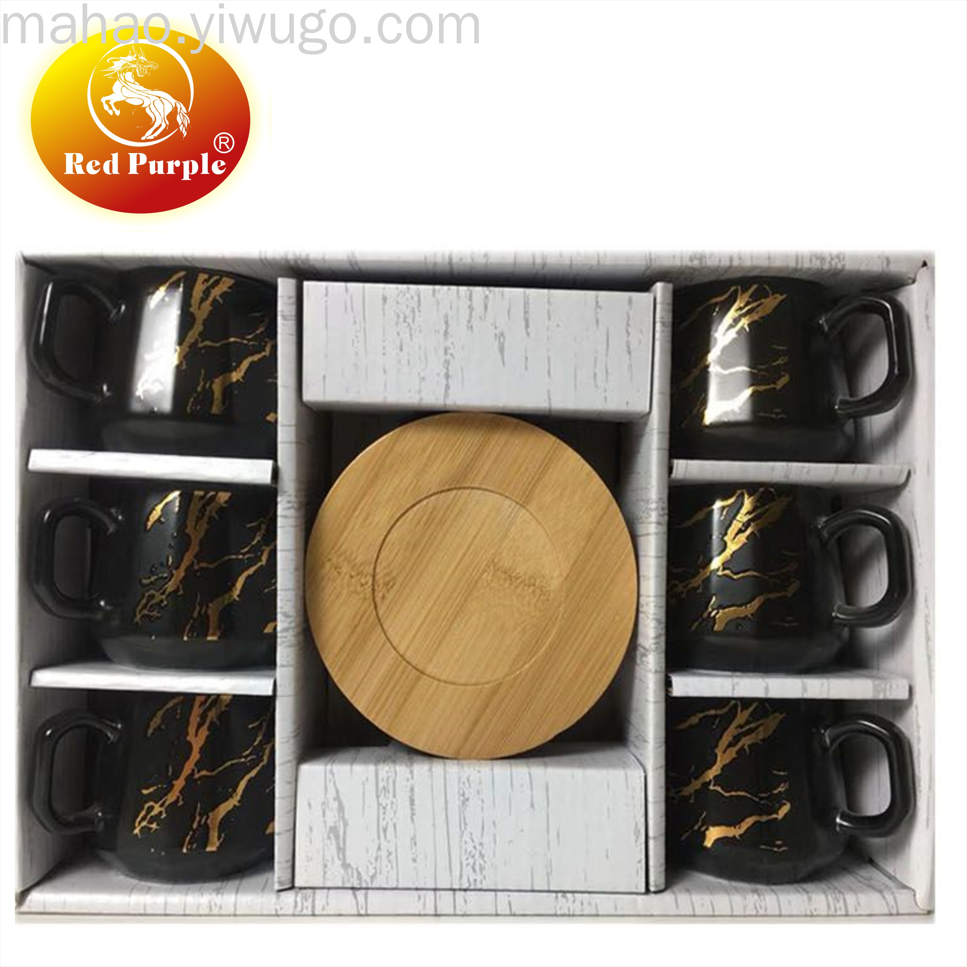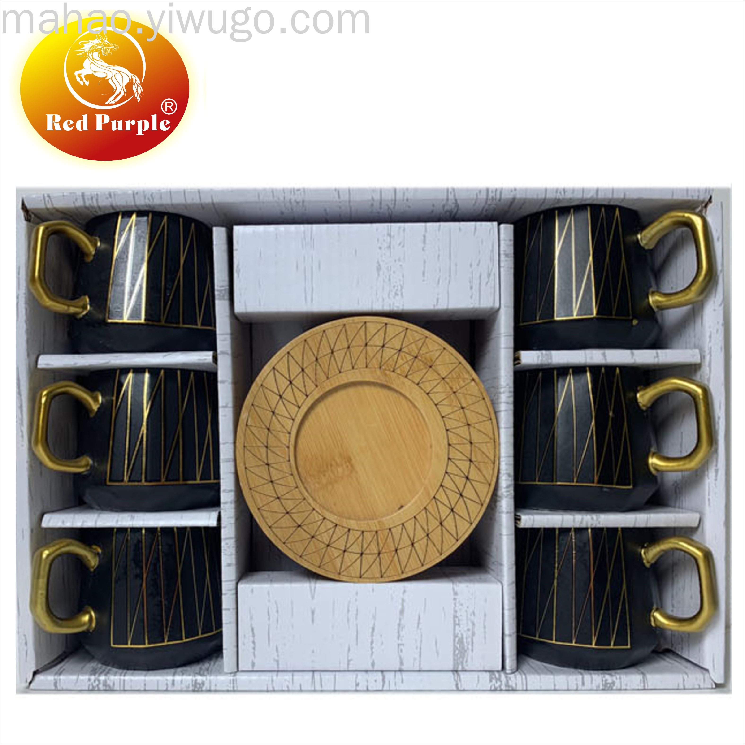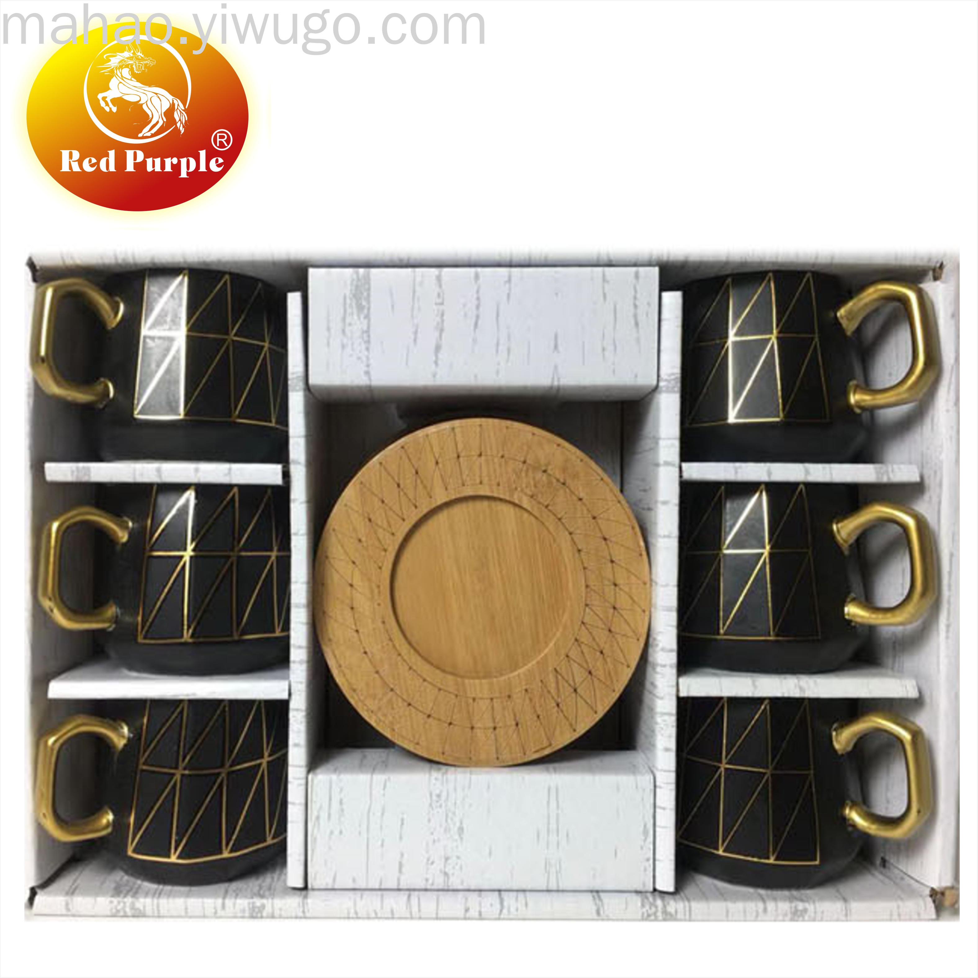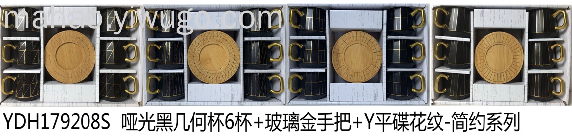 陶瓷几何杯6杯+竹木Y平碟套装系列