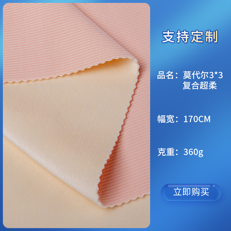 加厚针织面料复合 3*3罗纹坑条人棉莫代尔超柔复合银狐绒厂家直销