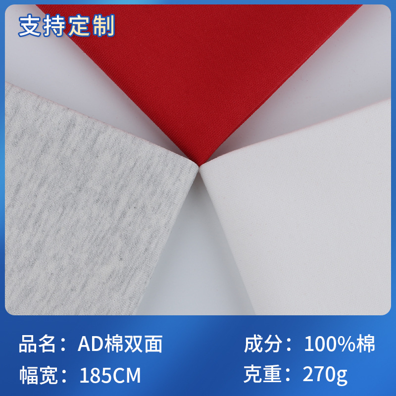 40S精棉双面纯棉面料 270g双面全棉针织布 秋冬潮牌裤子针织面料