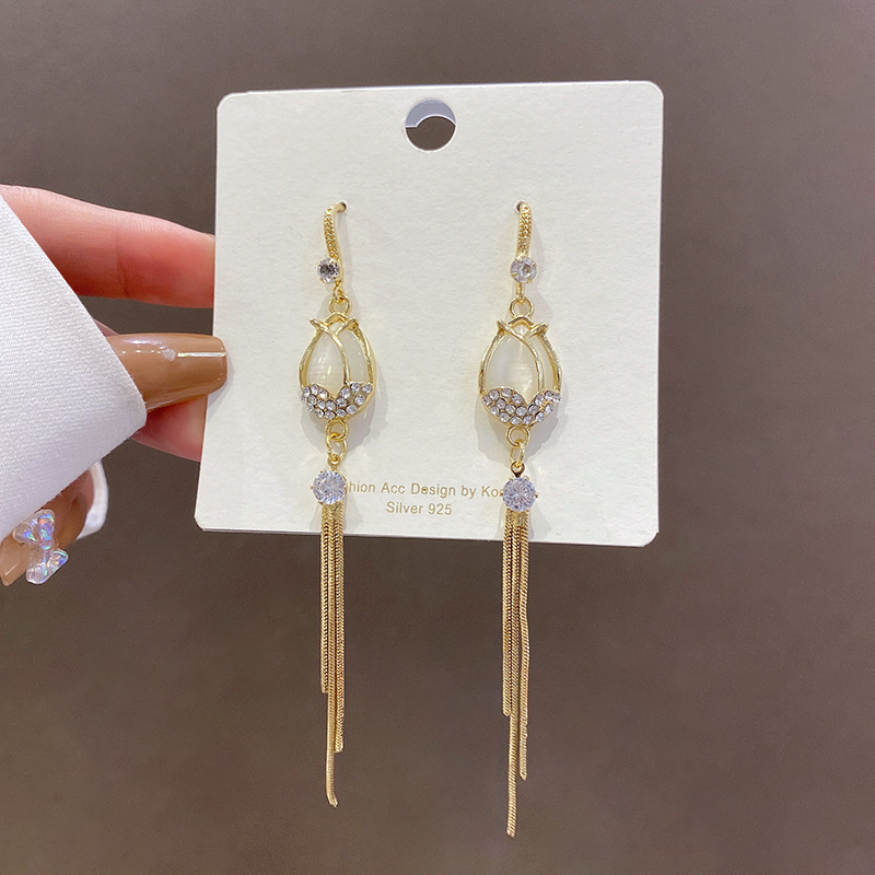 欧美高级感长款流苏耳环女气质百搭925银针耳坠ins风爆款耳饰批发