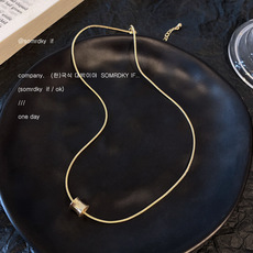 黑色方块吊坠锁骨链女ins风小众设计感项链百搭气质网红颈链配饰