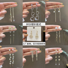 S925银针超仙花朵耳环女简约气质长款流苏耳坠欧美复古时尚耳饰品