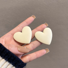 欧美复古奶白色大爱心耳环女甜美气质夸张亚克力耳钉925银针耳饰