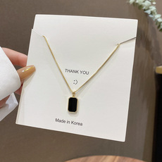 ins风小众轻奢双面方牌项链简约气质钛钢锁骨链网红同款潮牌配饰
