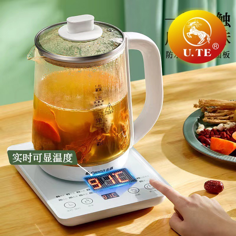 玻璃养生壶可显温度煮茶壶1.8L