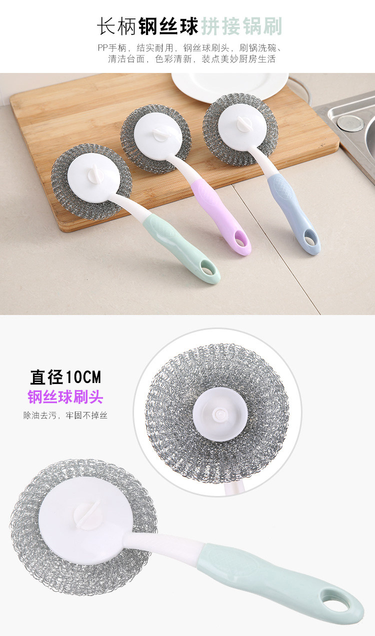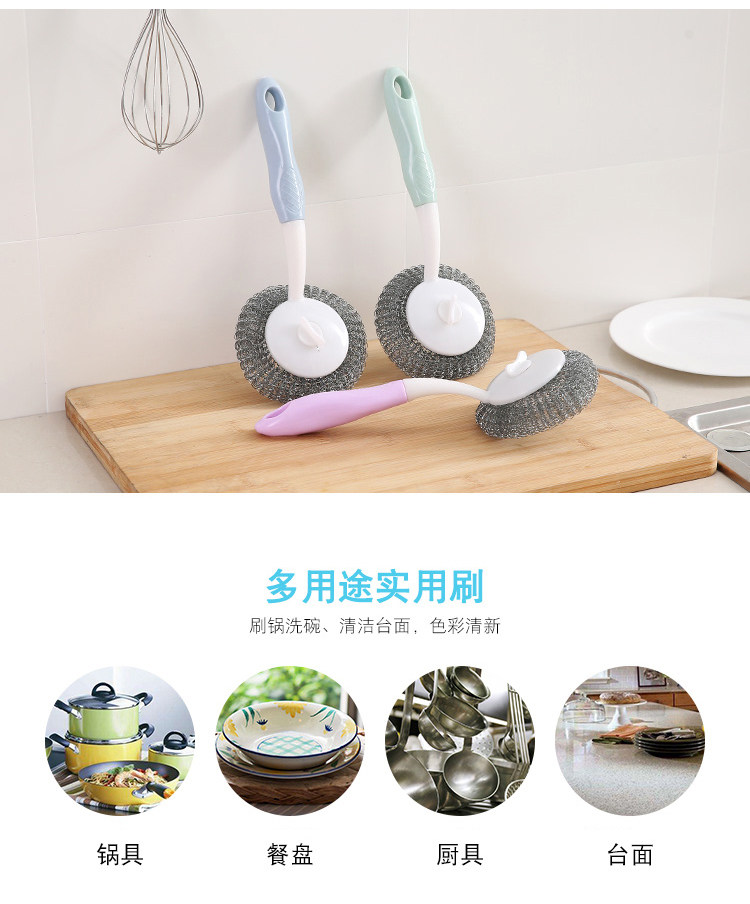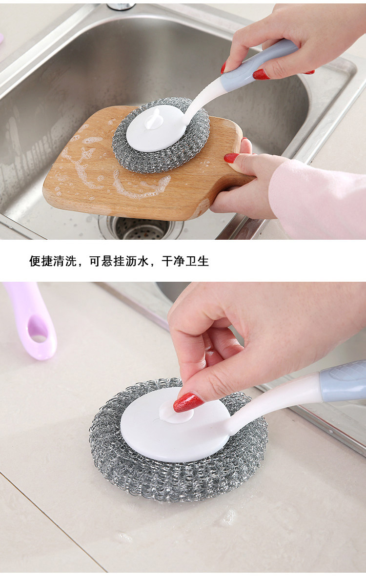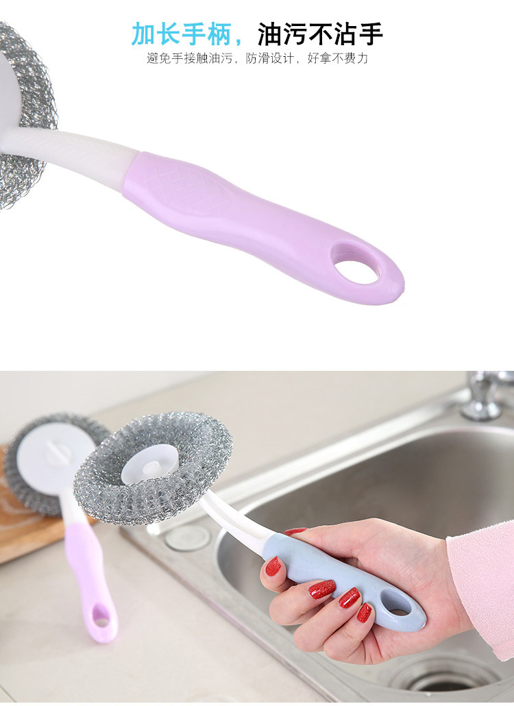 厨房可挂式清洁刷子 创意长柄钢丝球刷去油污洗锅刷