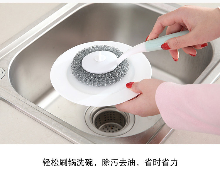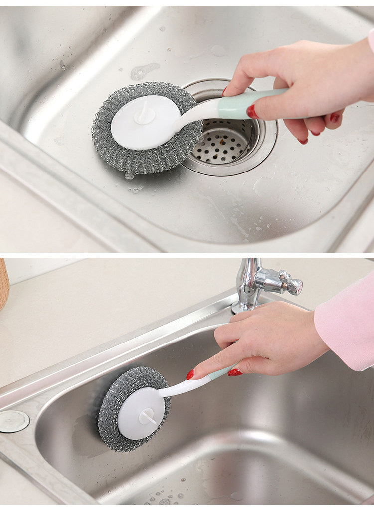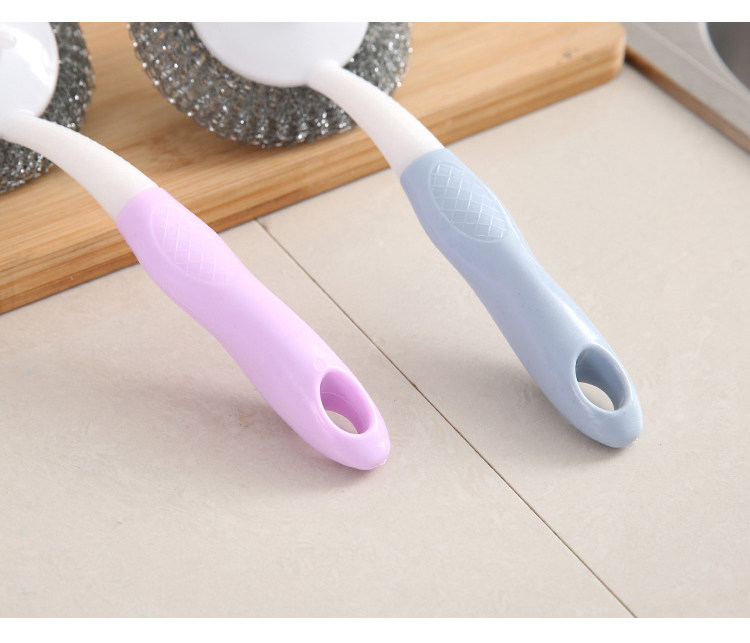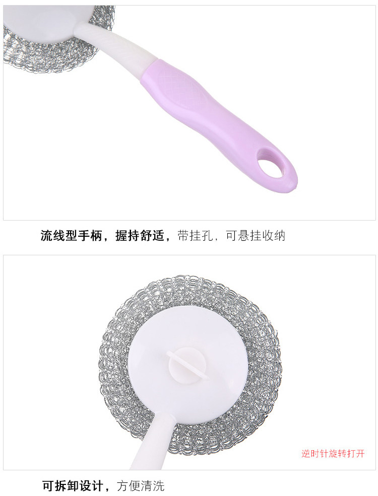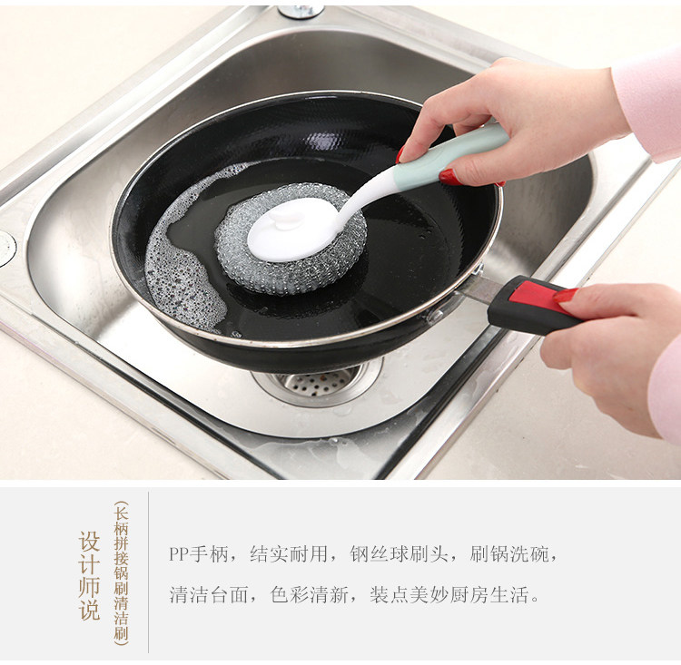 厨房可挂式清洁刷子 创意长柄钢丝球刷去油污洗锅刷