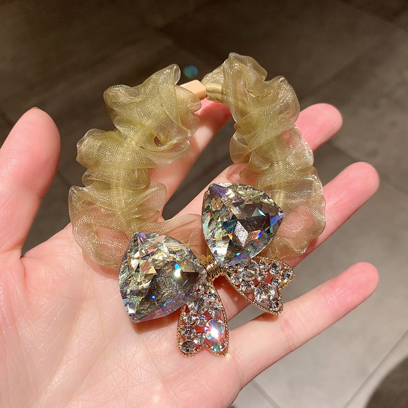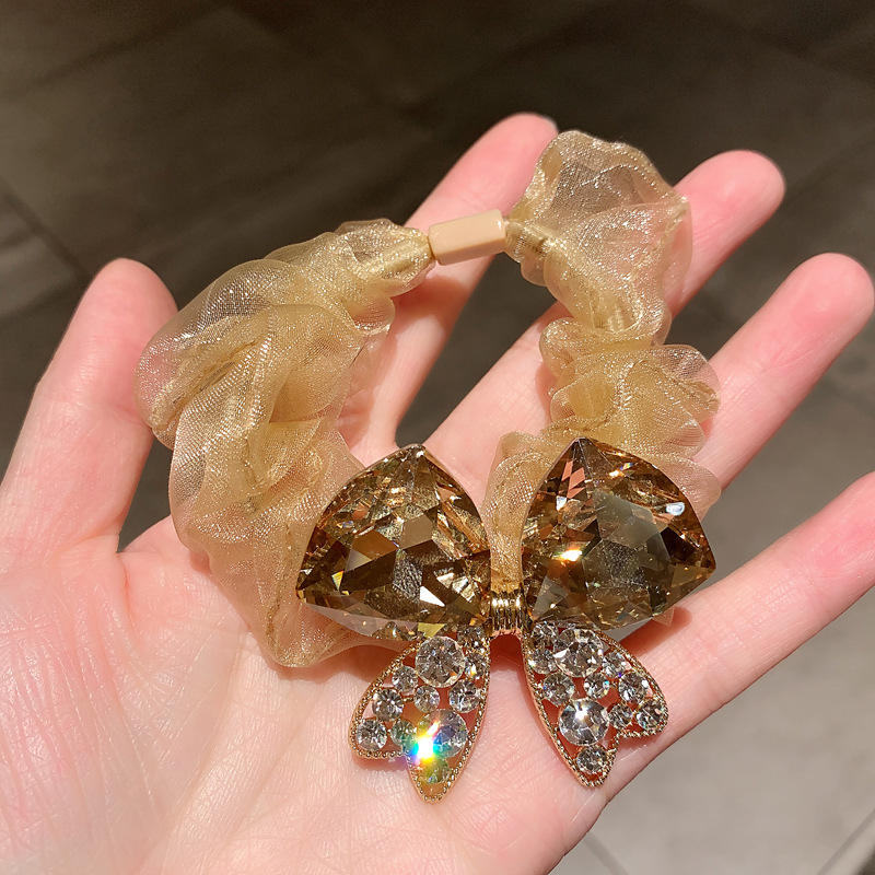 水晶蝴蝶大肠发圈女感网纱发绳百搭时尚马尾发饰皮筋
