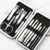 黑色不锈钢12件指甲刀套装指甲剪便携修甲粉刺针美甲工具