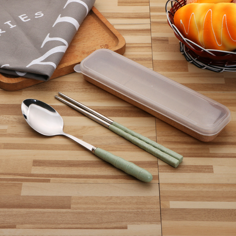 筷子勺子套装304不锈钢便携餐具三件套学生成人叉子网红日式餐具