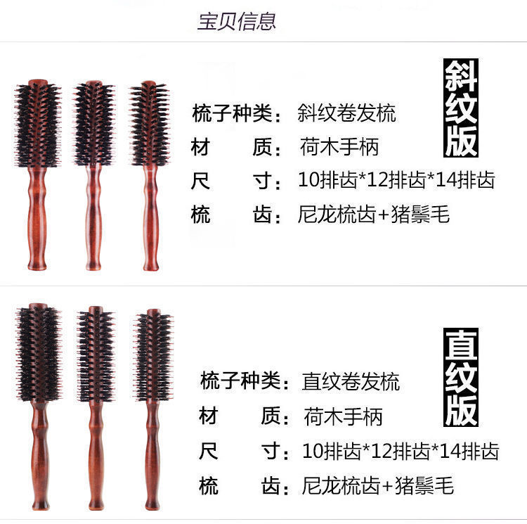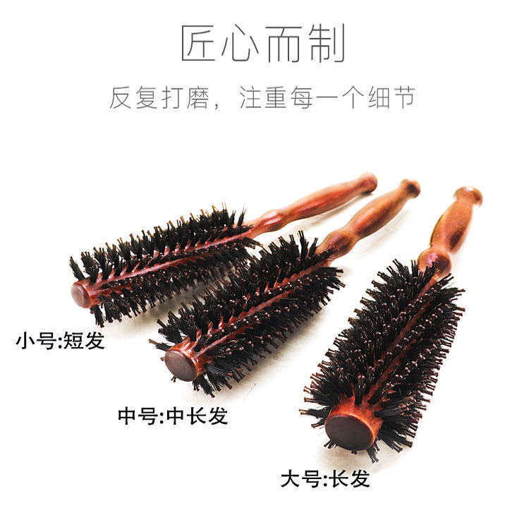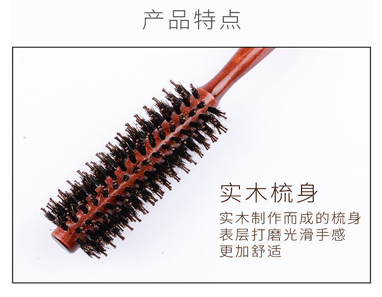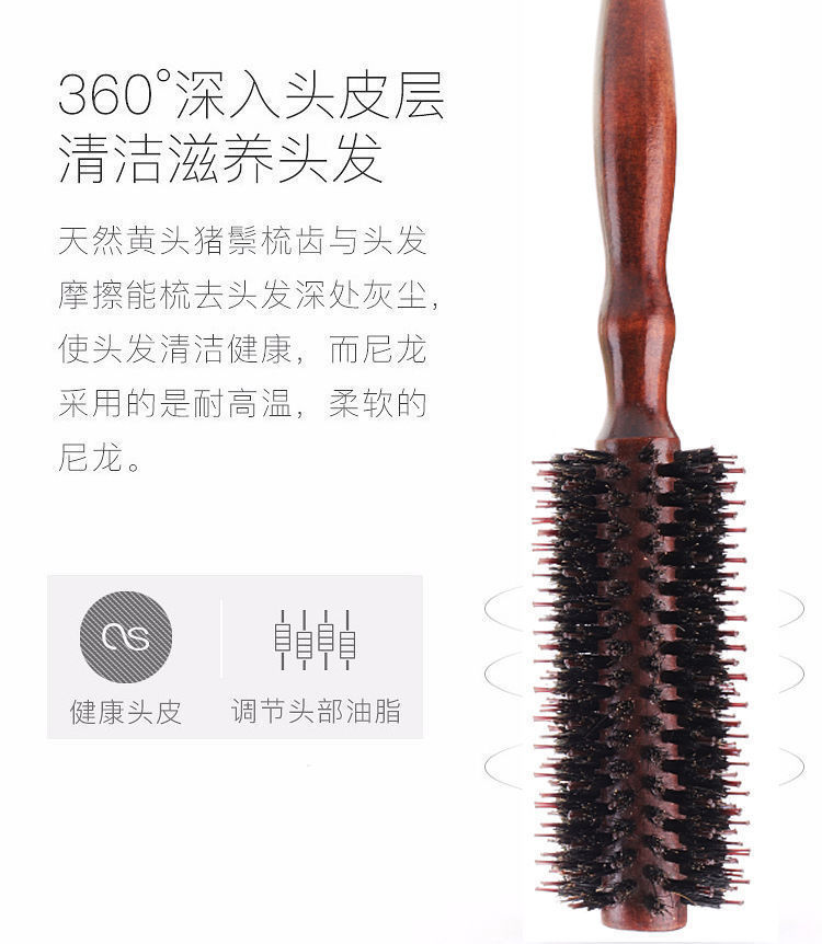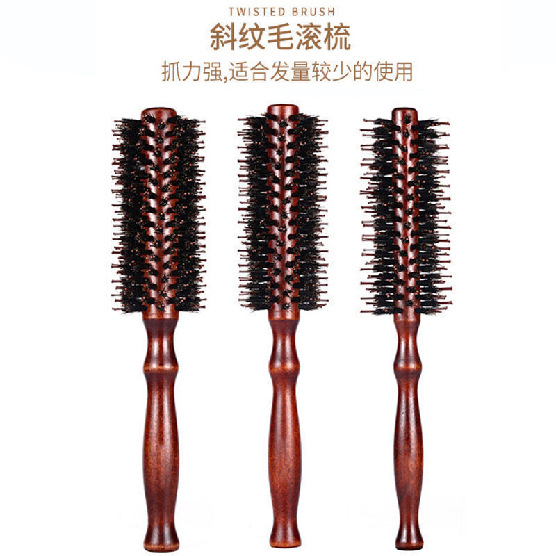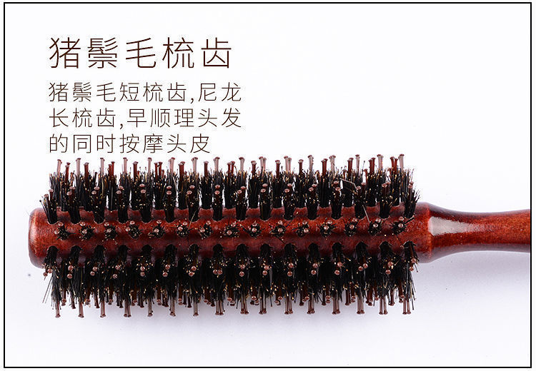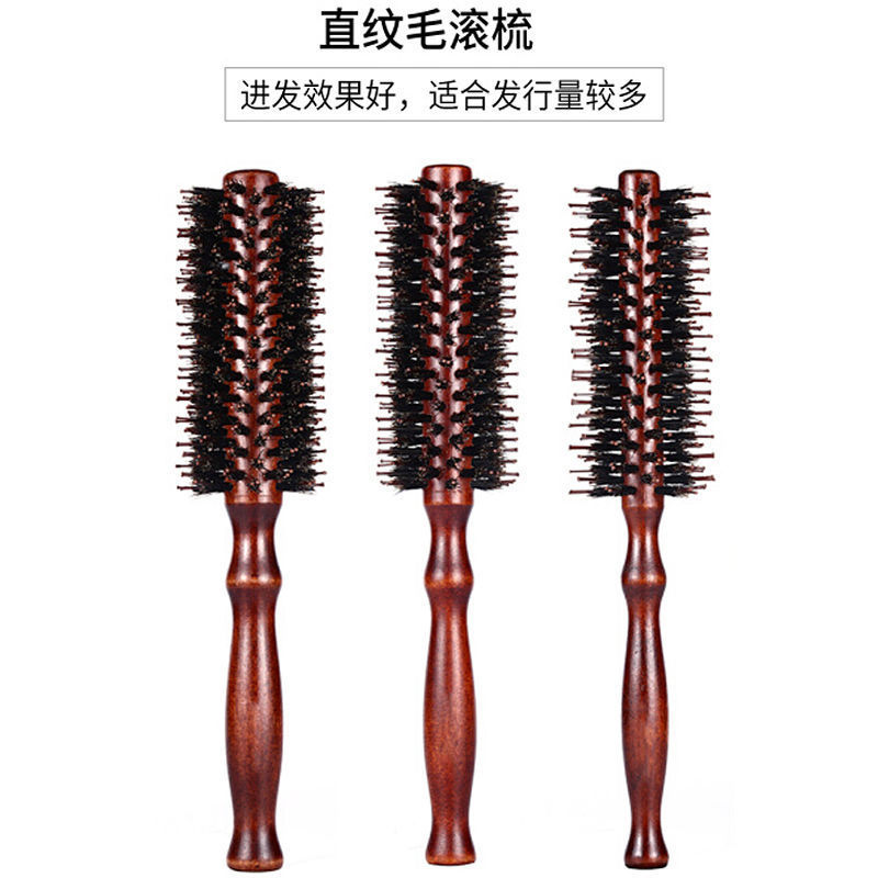 发廊专业猪鬃毛卷长发梳子女士家用滚梳直发内扣梨花圆筒受热木男