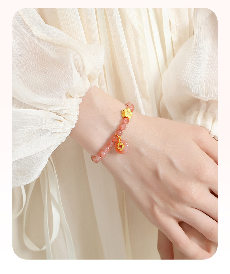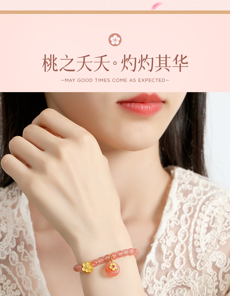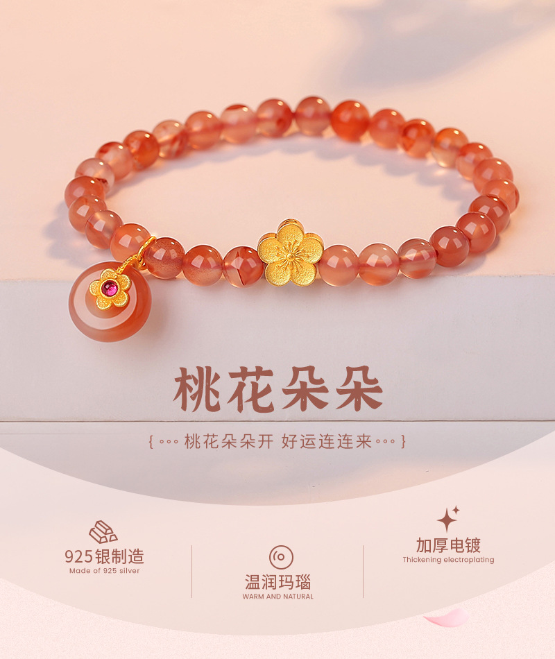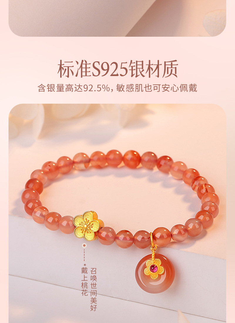 蒂奇亚实拍桃花玛瑙手串纯银轻奢小众设计感手链女新款送闺蜜礼物