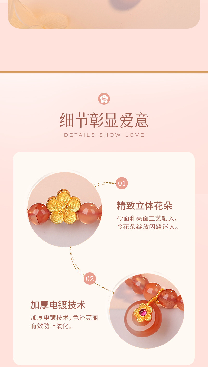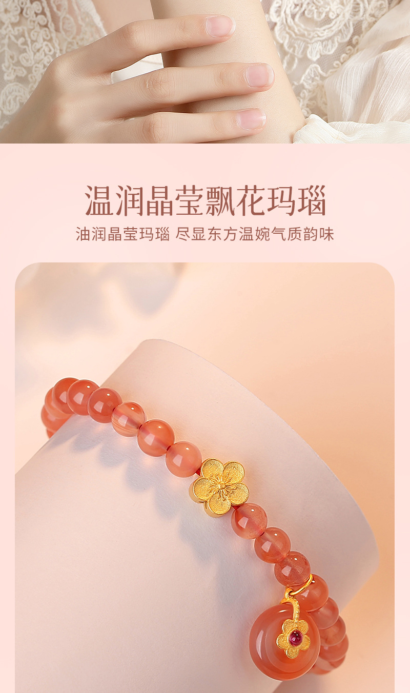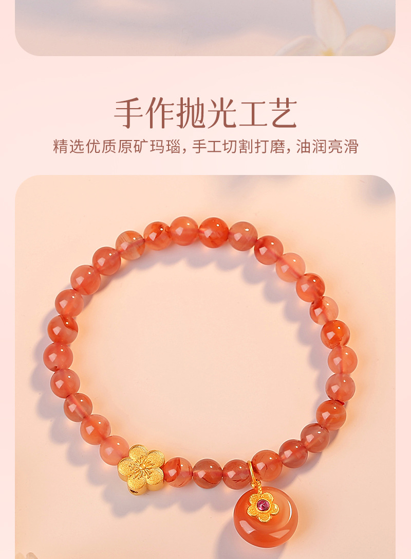蒂奇亚实拍桃花玛瑙手串纯银轻奢小众设计感手链女新款送闺蜜礼物
