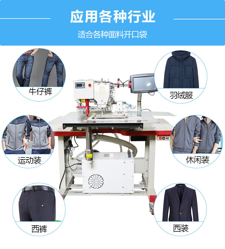 恰缝科技激光开袋机全自动服装牛仔库帽檐口袋工业缝纫机花样机