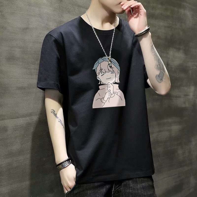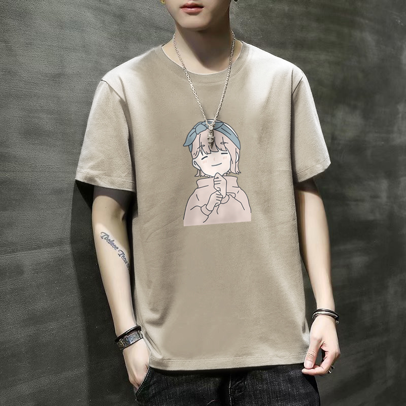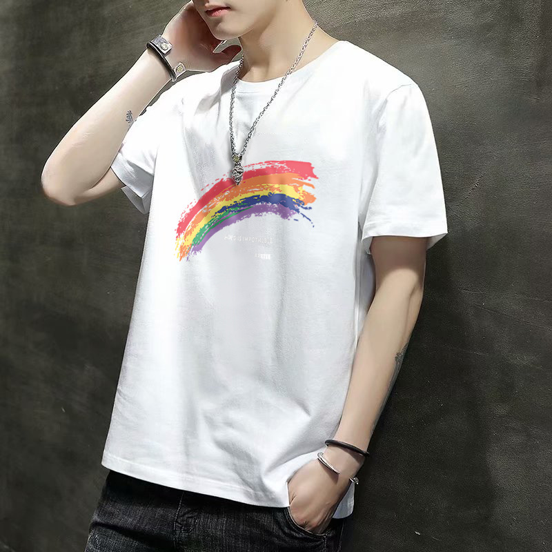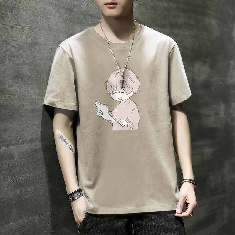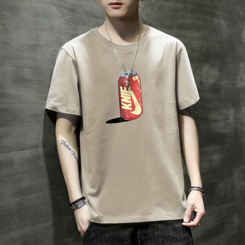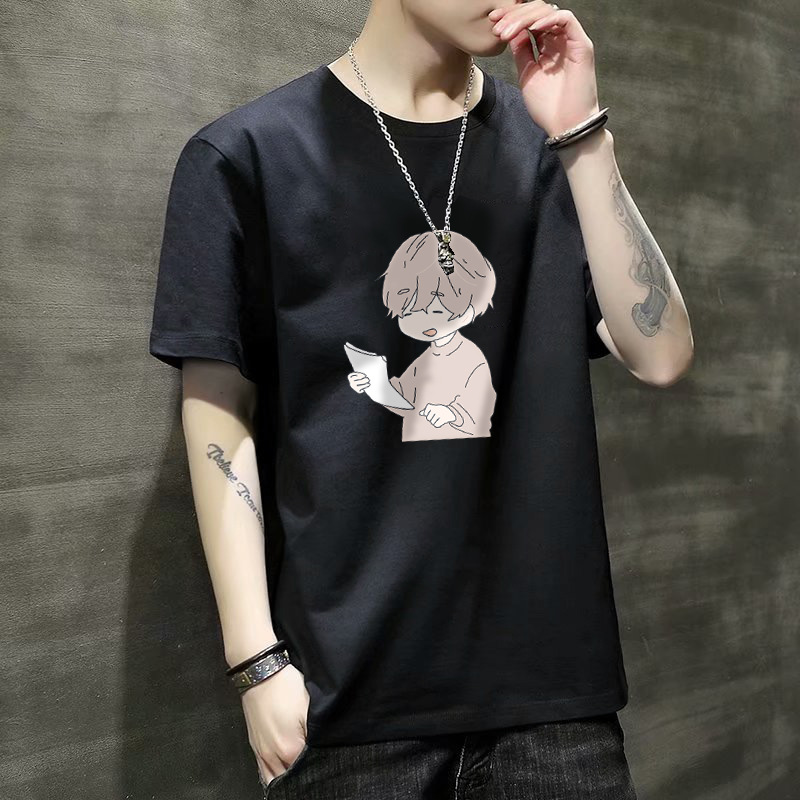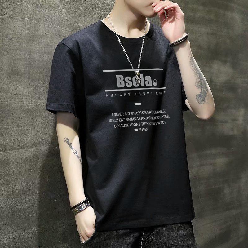 男式夏季t恤男圆领半截袖男士印花短袖地摊夜市修身打底体恤衫潮