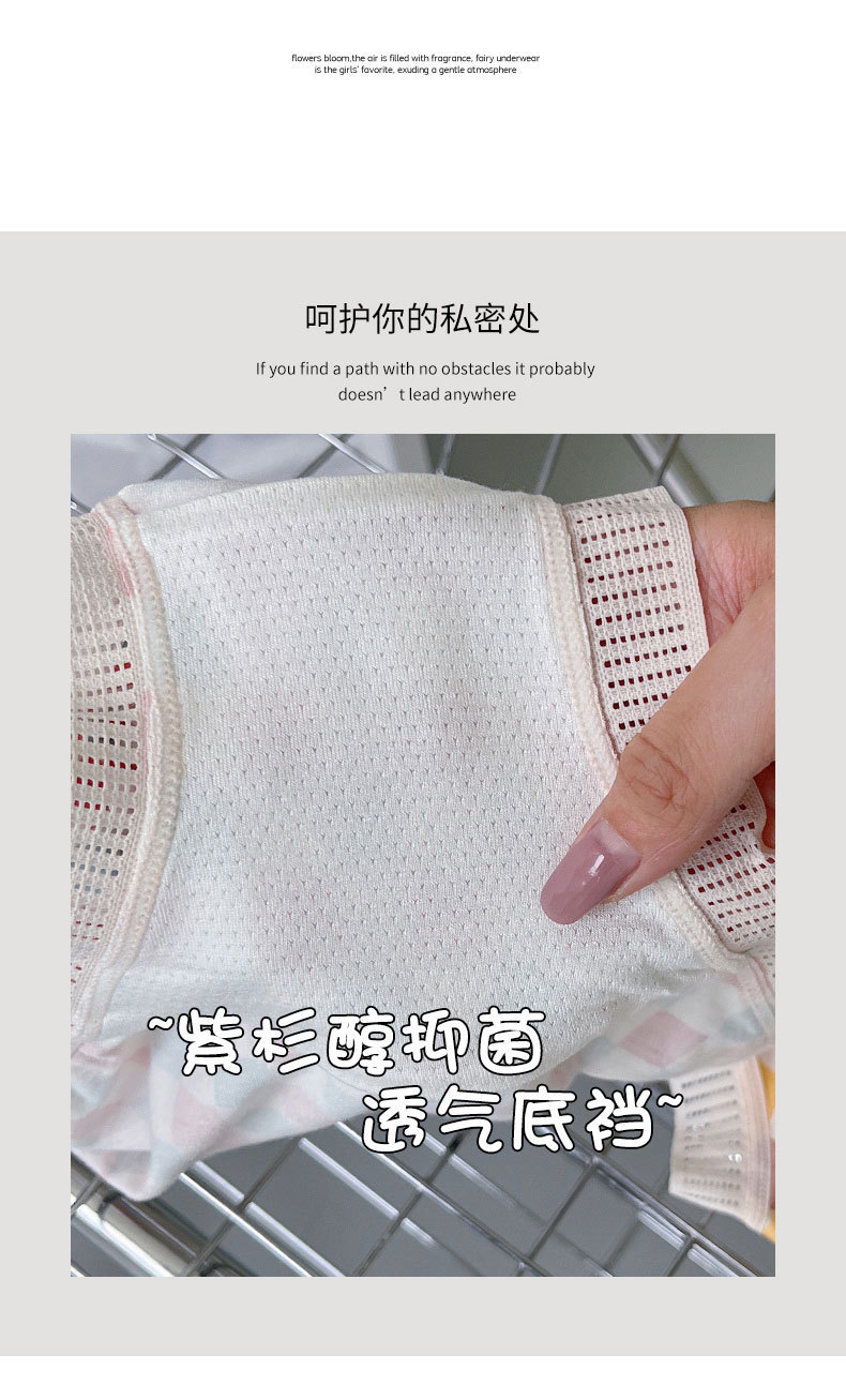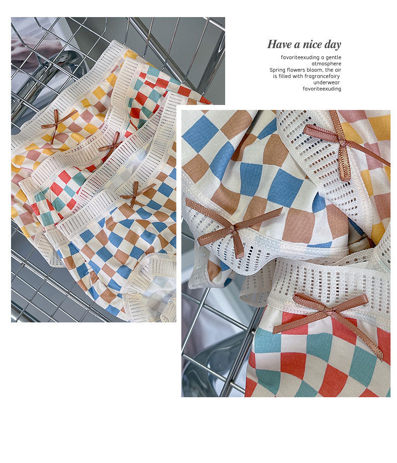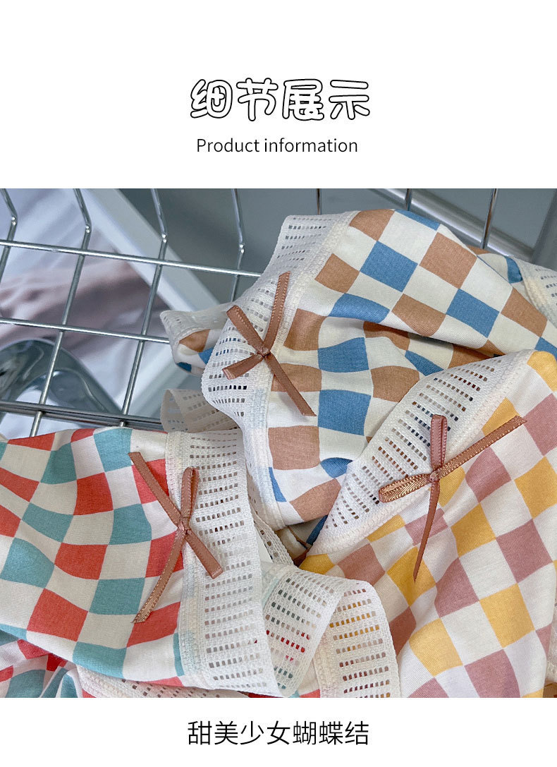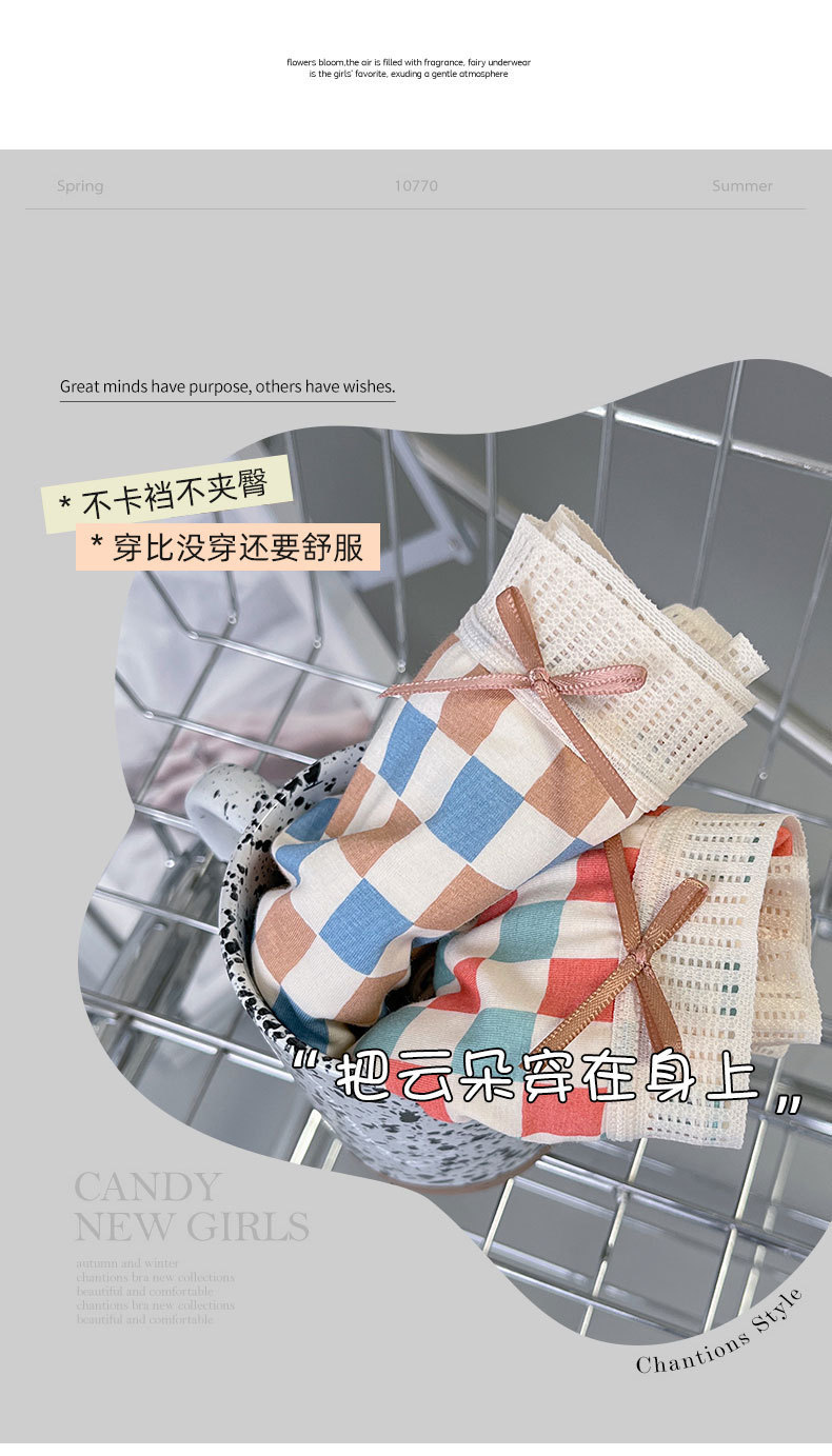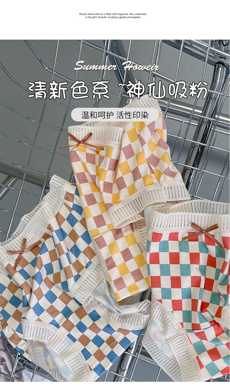 MEIZZ 莫代尔格子无痕少女三角裤紫杉醇全棉裆中腰内裤女批发