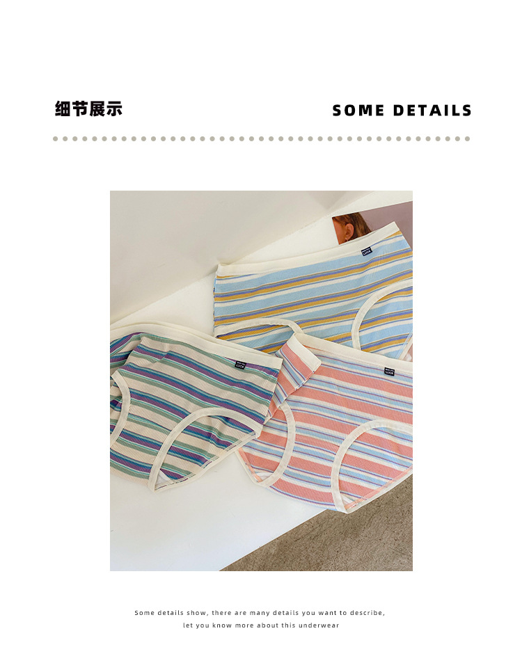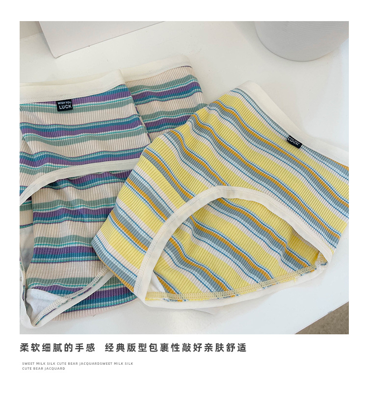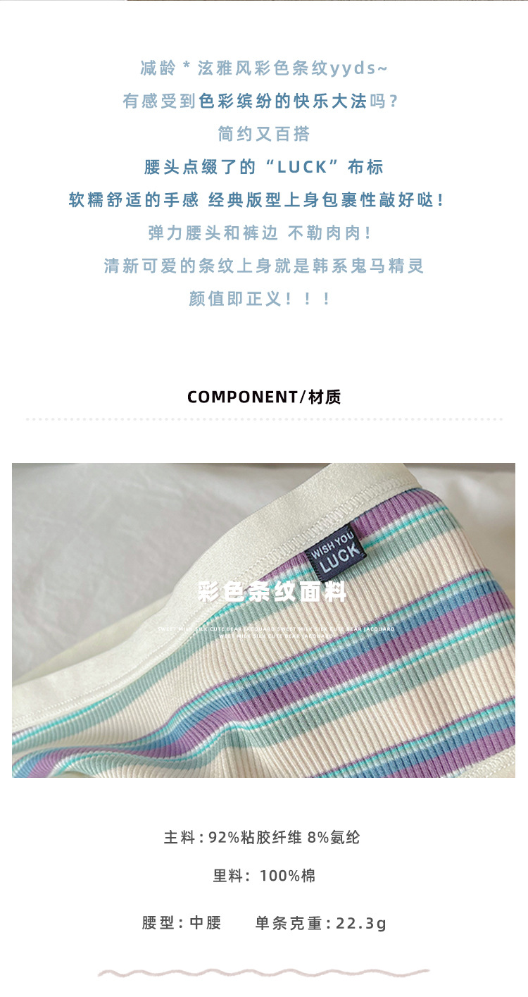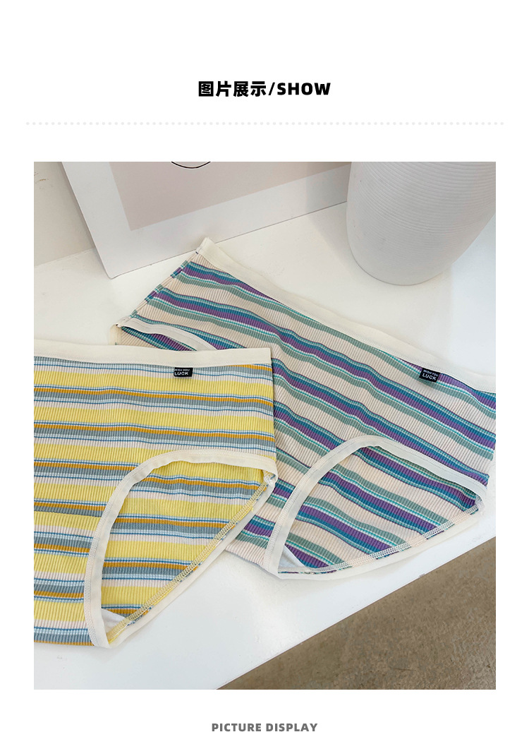 泫雅风彩色条纹简约日系螺纹全棉内裆无痕中腰大码内裤女士批发