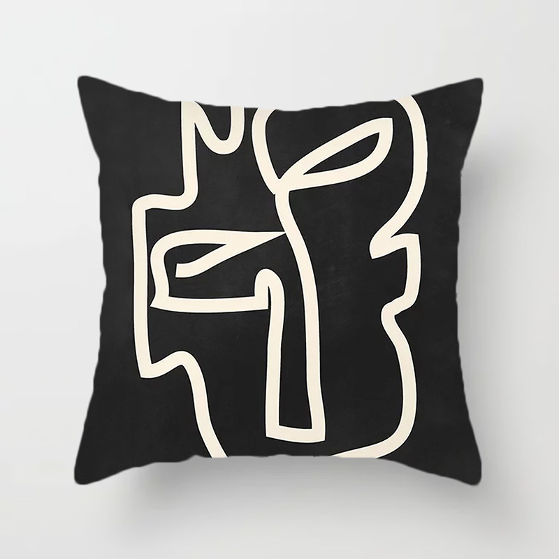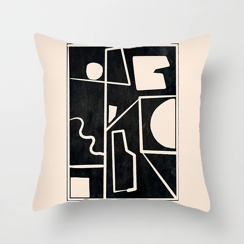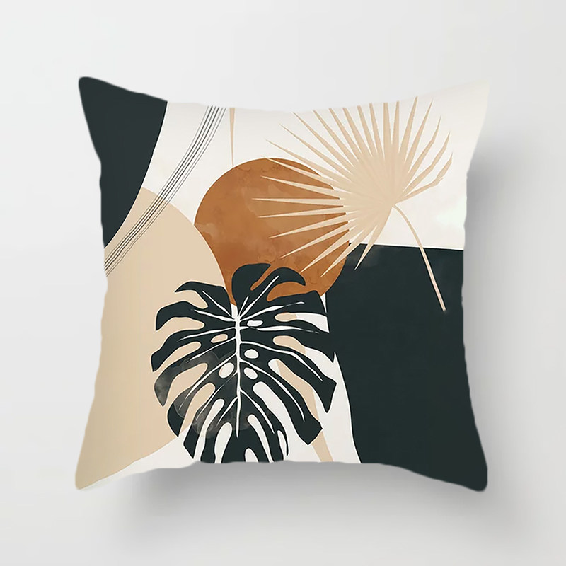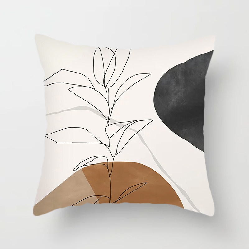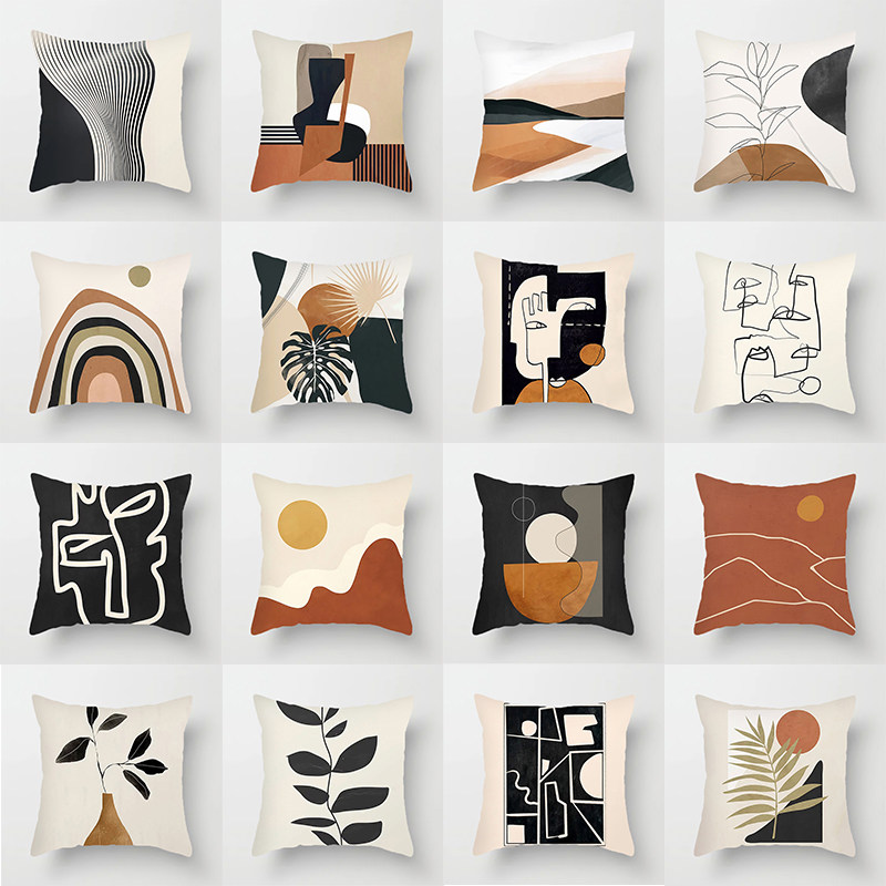 黑白棕简约风景北欧ins抱枕几何线条咖色民宿枕套客厅沙发靠垫套