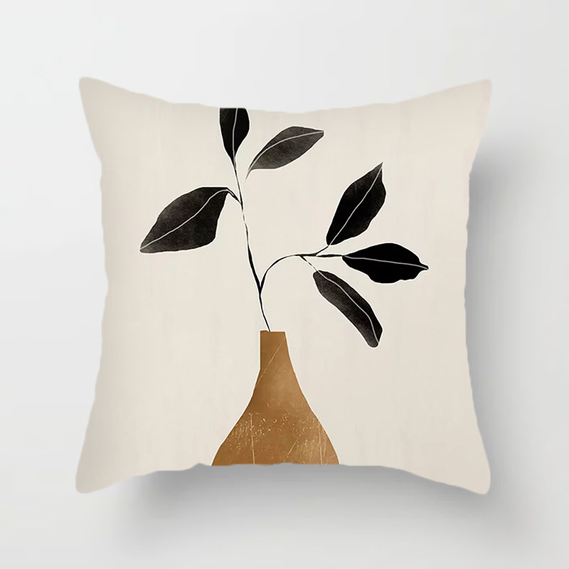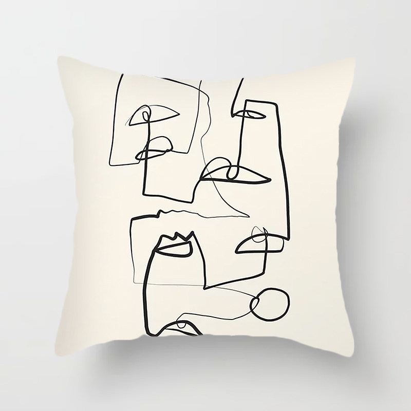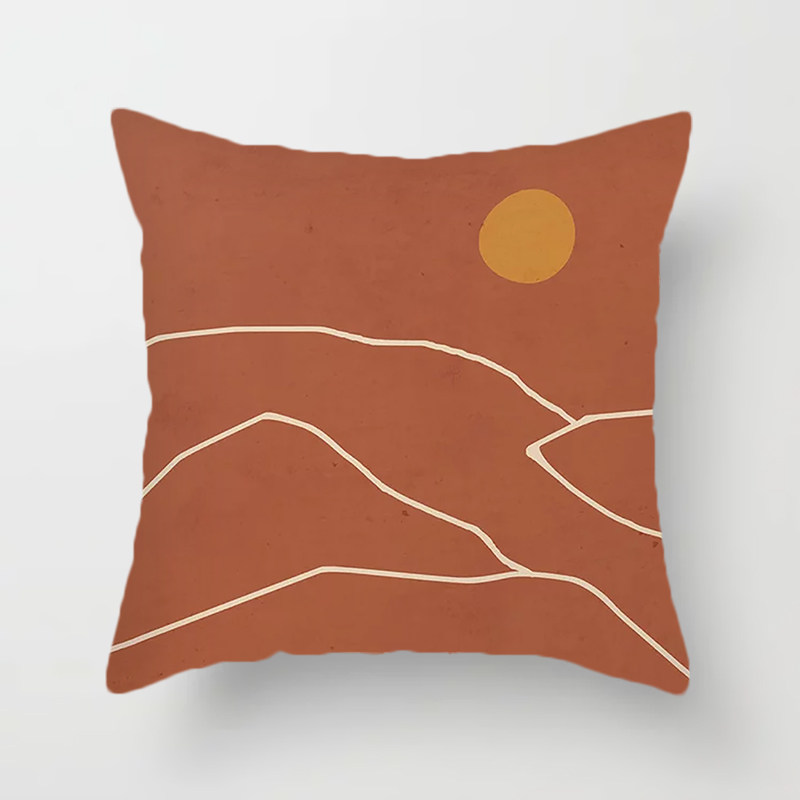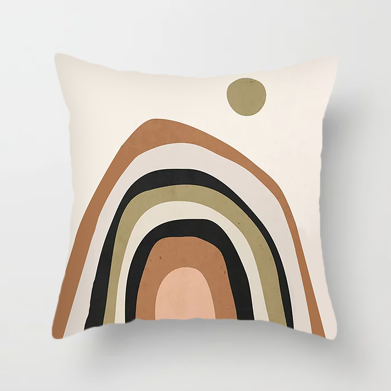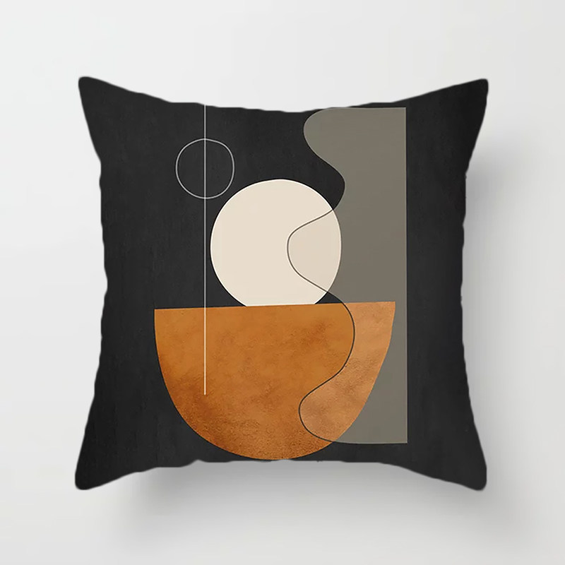 黑白棕简约风景北欧ins抱枕几何线条咖色民宿枕套客厅沙发靠垫套
